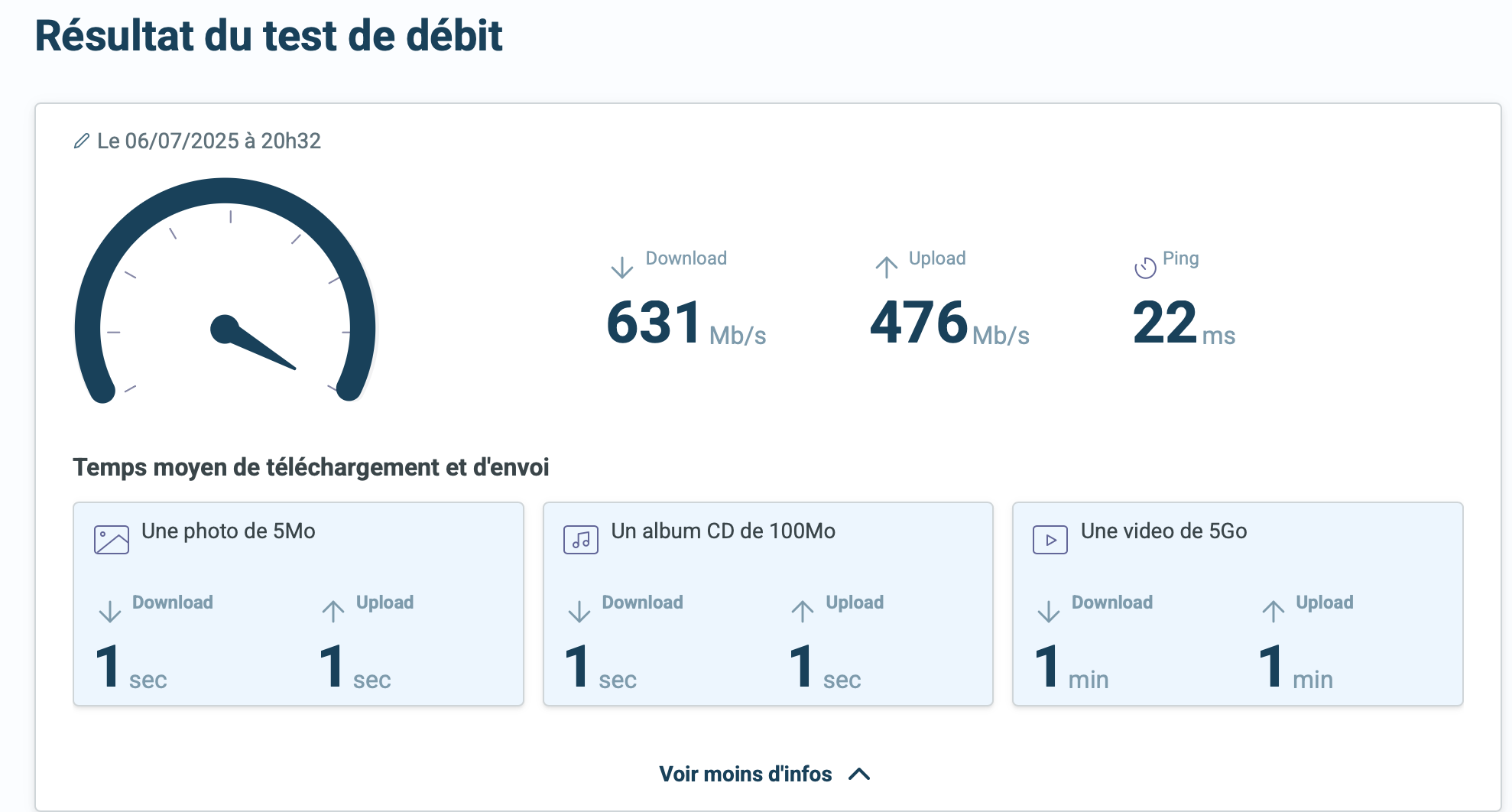 Vous aviez 546K en Upload et 40k en download ce qui est insuffisant par rapport au minima indiqué par Somfy