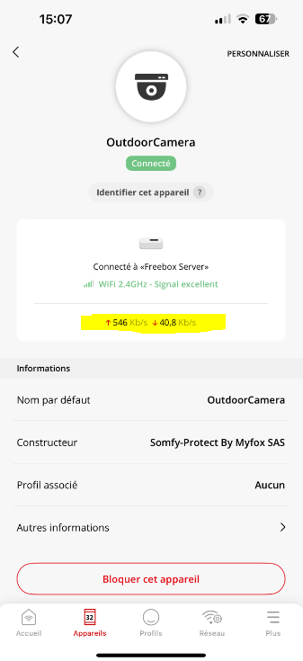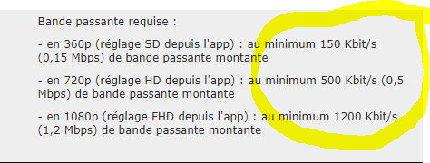 Il y a 1 mois vous avez communiqué le débit dont disposait la caméra sur le wifi de votre box.