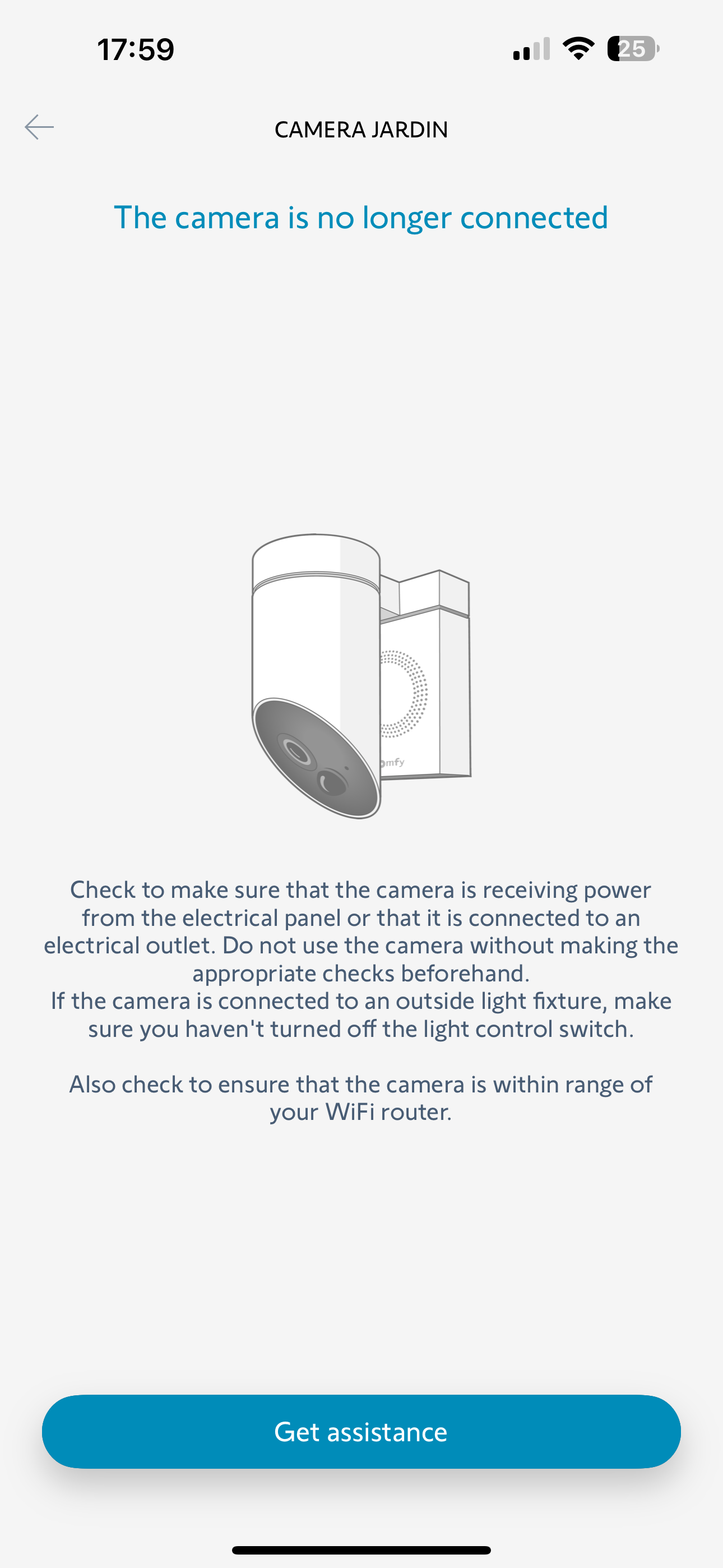 Voici encore une fois une déconnection de ma camera, le debit du wifi est excellent et la camera est connectée seule sur le réseau Guest. Donc c'est tous les 4 ou 6 semaines que ma camera se déconnecte et comme je suis souvent absent impossible de la reconnecter sand couper l'alimentation. Serait-il possible de me remplacer la camera SVP.