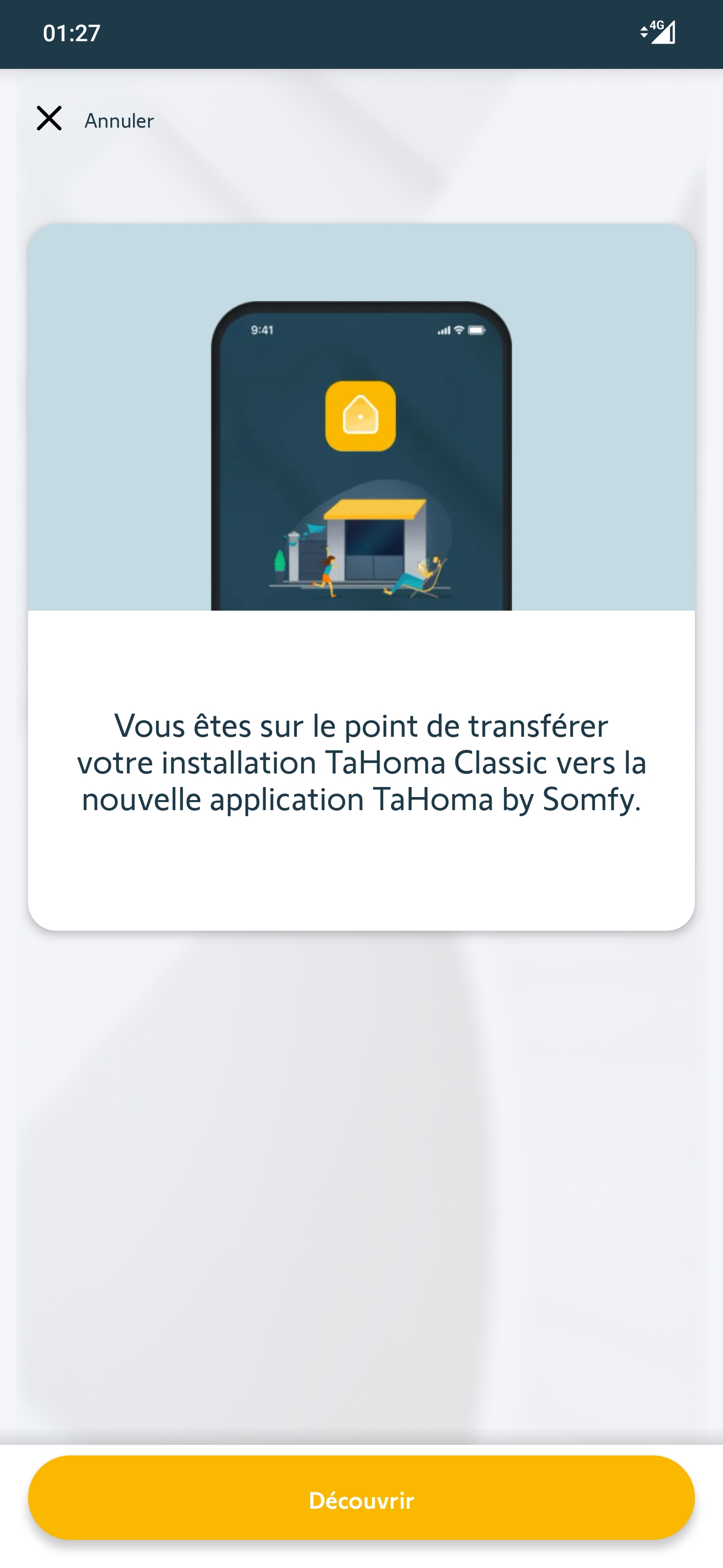 Bonjour, en ouvrant mon appli TaHoma, j'ai ce message. Dois-je continuer ou annuler ? (Voir pièce jointe)