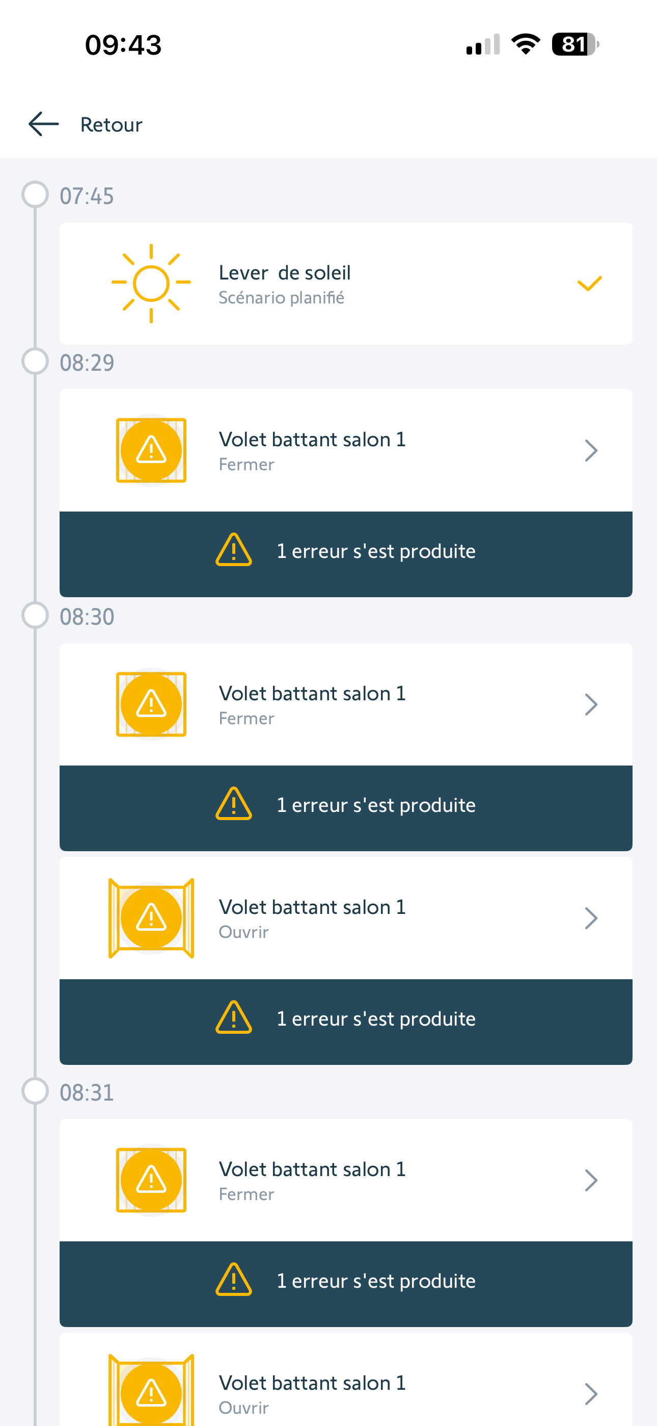 Je ne vois plus d'erreurs dans le pilotage de vos volets.