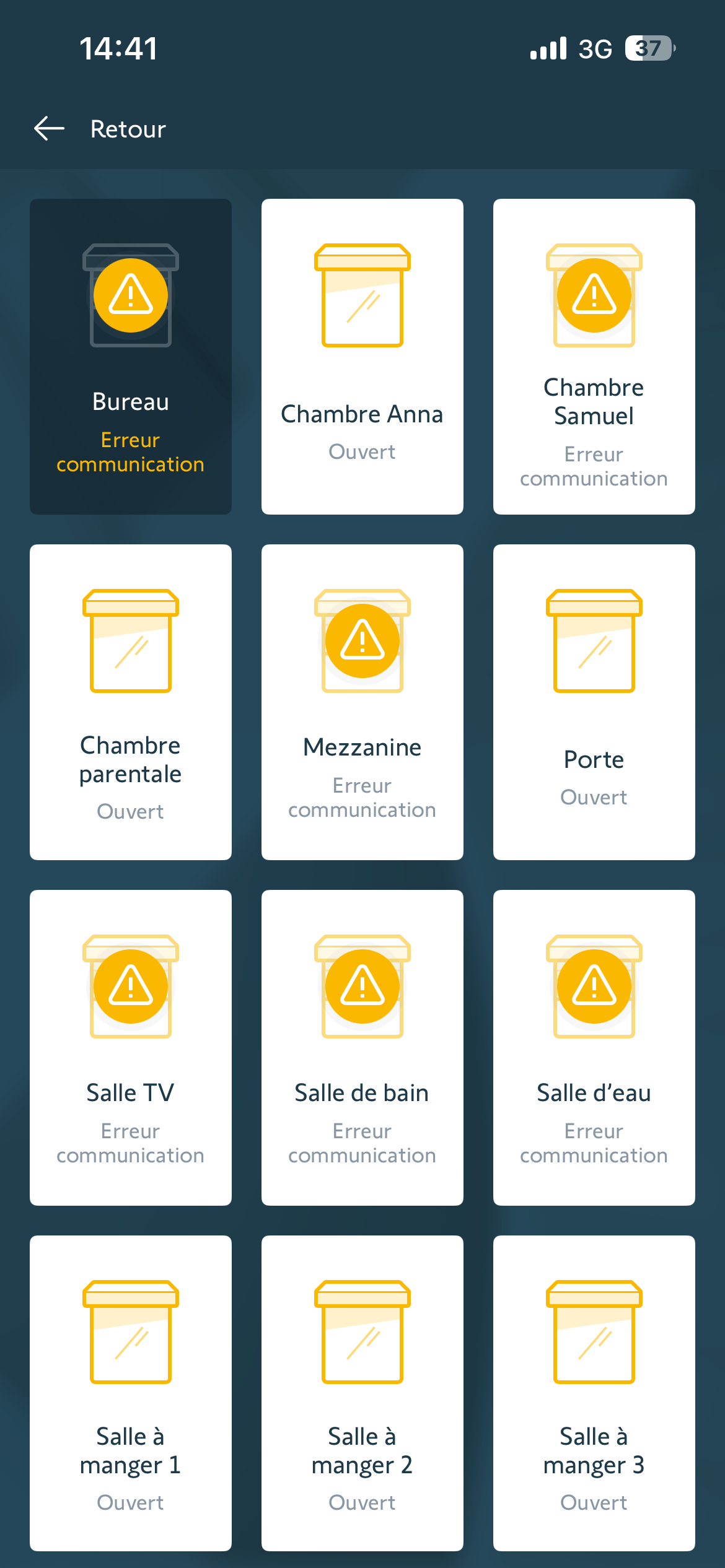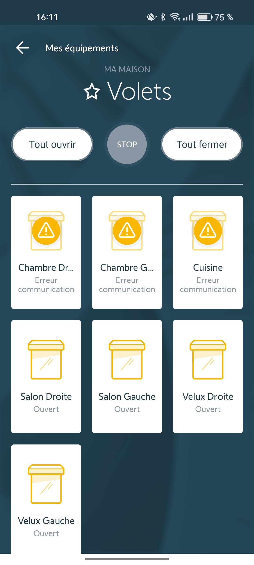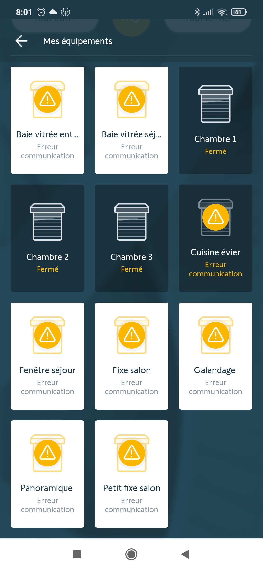 Seuls les volets de velux sont en « erreur ». Les autres fenêtres RAS.