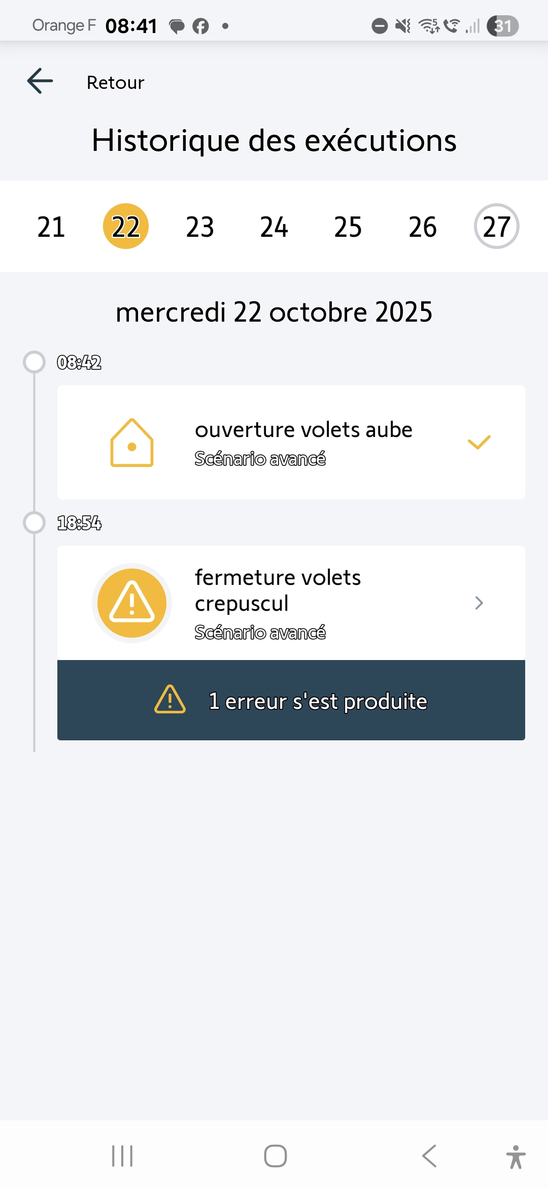 Je ne vois actuellement plus de problème sur le pilotage de vos volets.