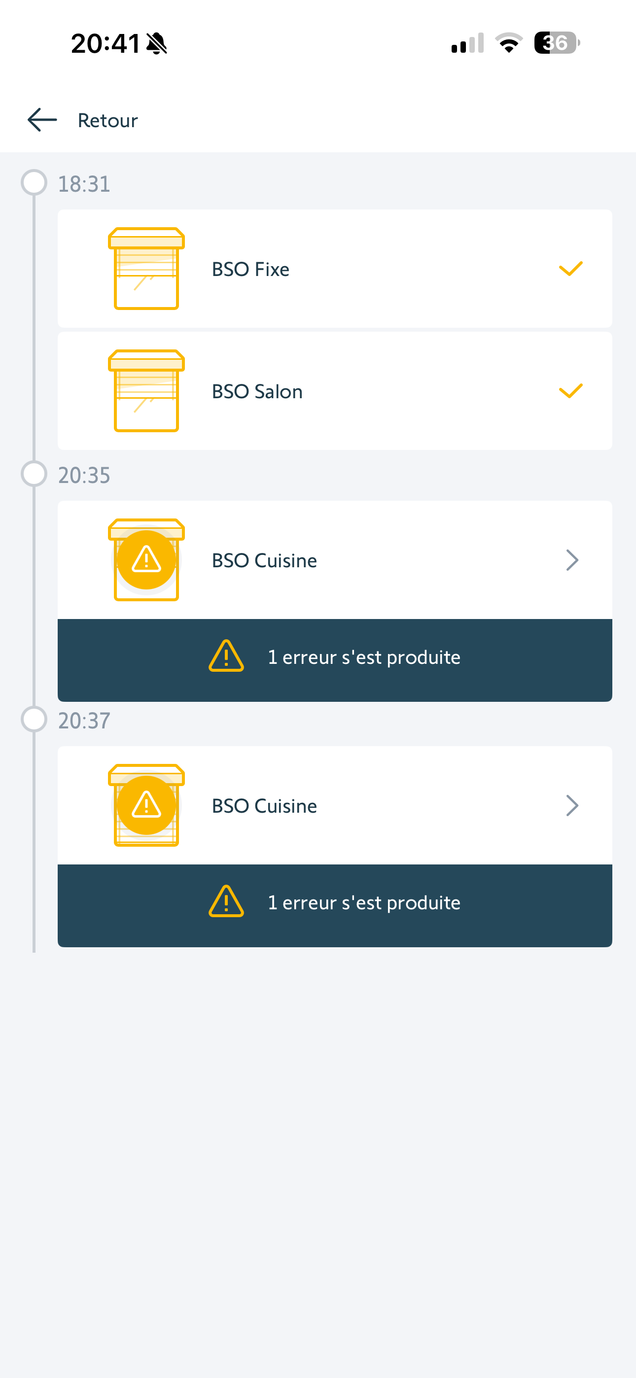 Je ne vois plus d'erreurs dans le pilotage de vos volets.