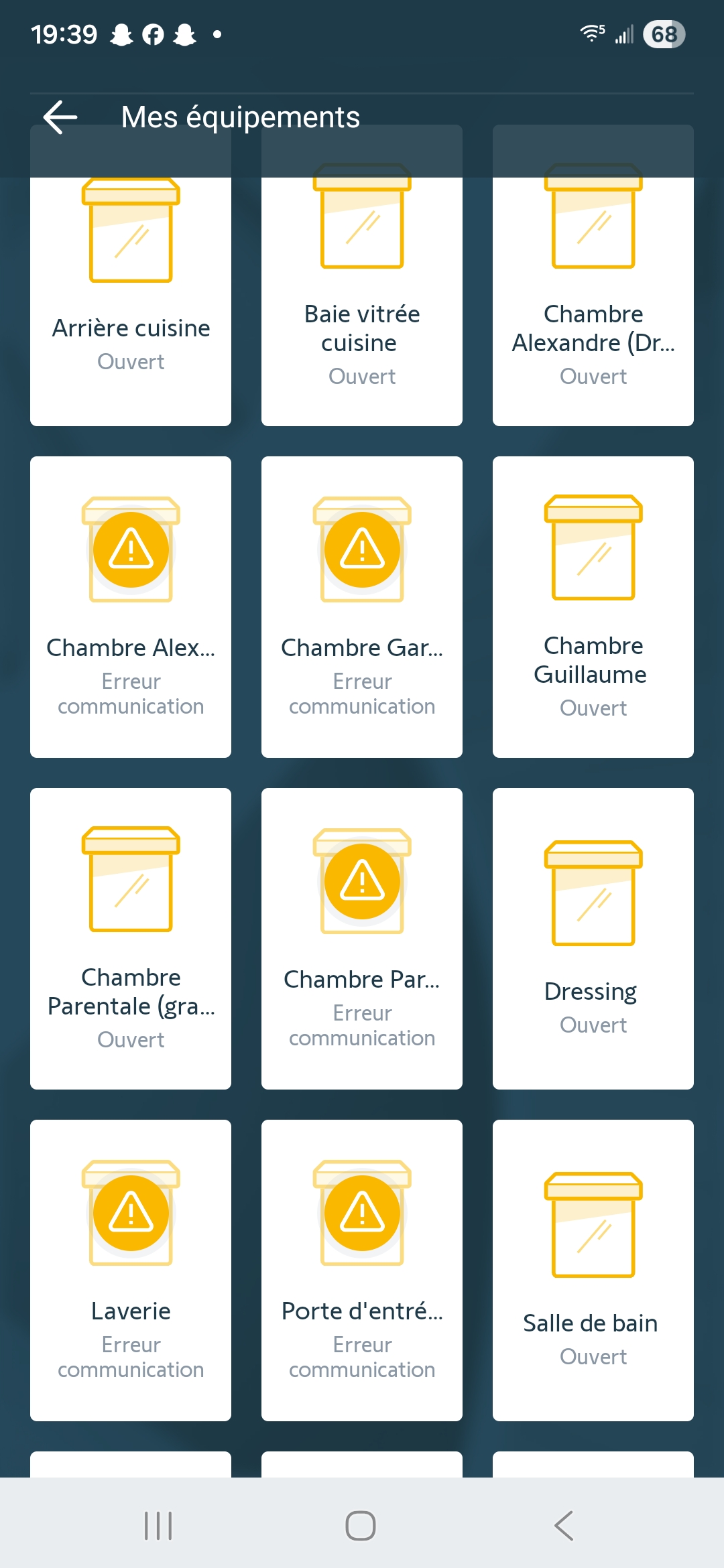 J'ai exactement le même problème. Tous mes volets, mon contrôle du chauffage, sondes... on un problème de communication. Que faire ? J'ai réinstallé l'application ça ne fonctionne pas.