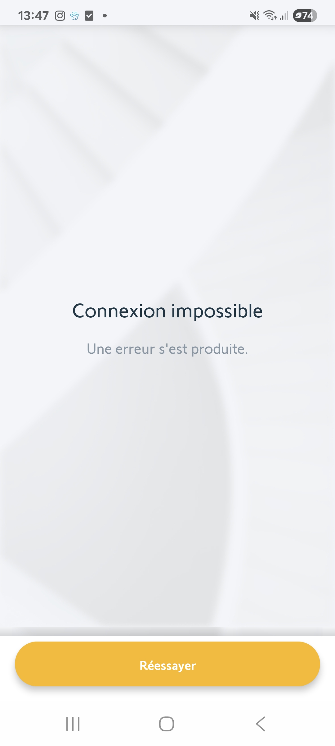 J'ai le même problème depuis 2-3 semaines. Impossible de me connecter à l'application. En revanche cela fonctionne sur le téléphone de mon conjoint.
