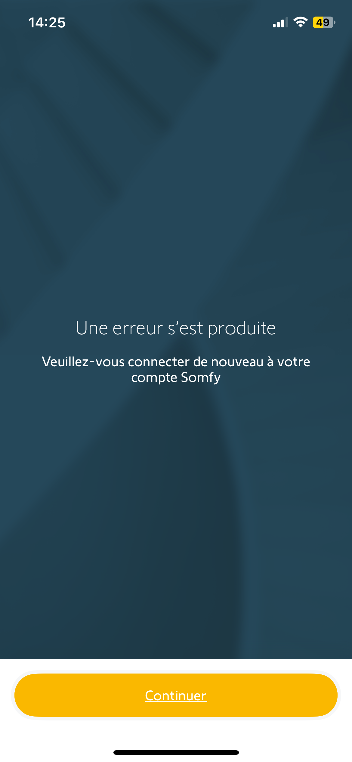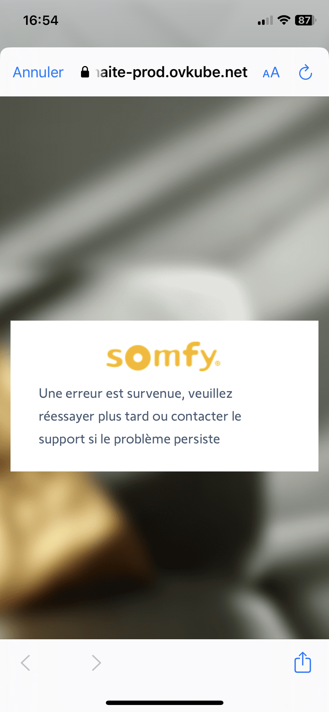 J'arrive à bien me connecter sur le site Somfy.fr, en revanche sur l'application, j'ai un message "Connexion impossible Une erreur s'est produite"