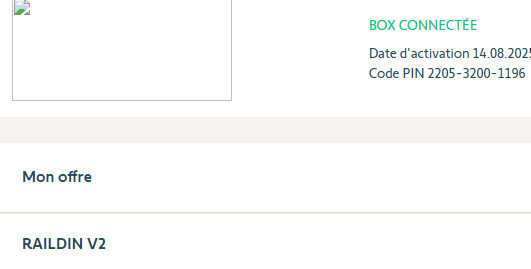 Dans l'appli "TAHOMA" ou sur le site Somfy.fr, le BOX RAILDIN V2 est bien connecté.