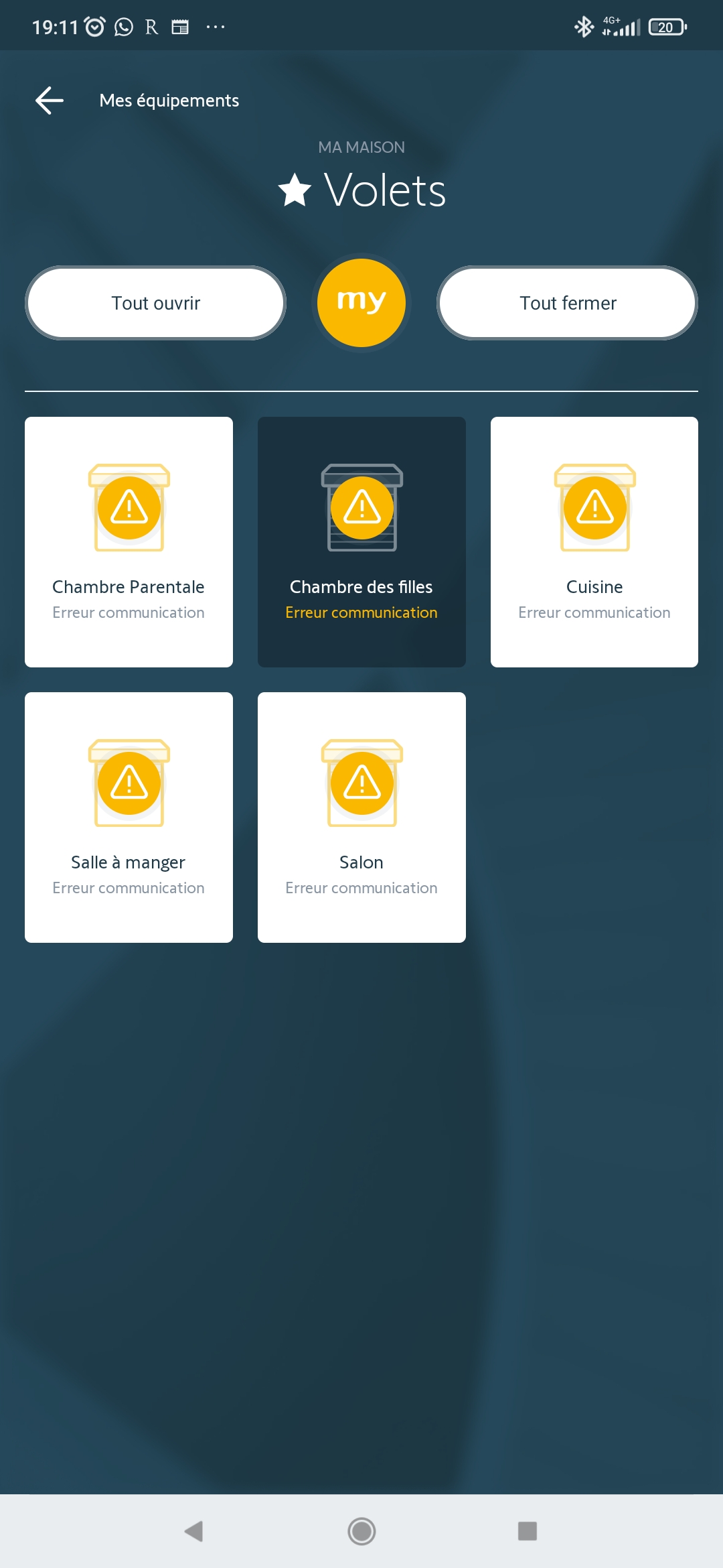 Une fois celui-ci redémarré, l'application Tahoma me remonte tous les volets en erreur de communication.