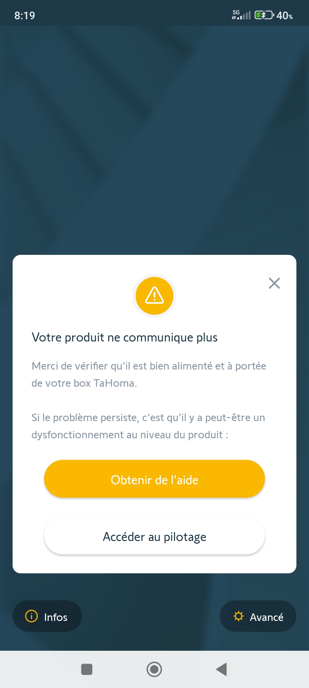 Mauvaise surprise aujourd'hui, en pleine journée mes volets sont repassés en erreur de communication dans l'application Tahoma.