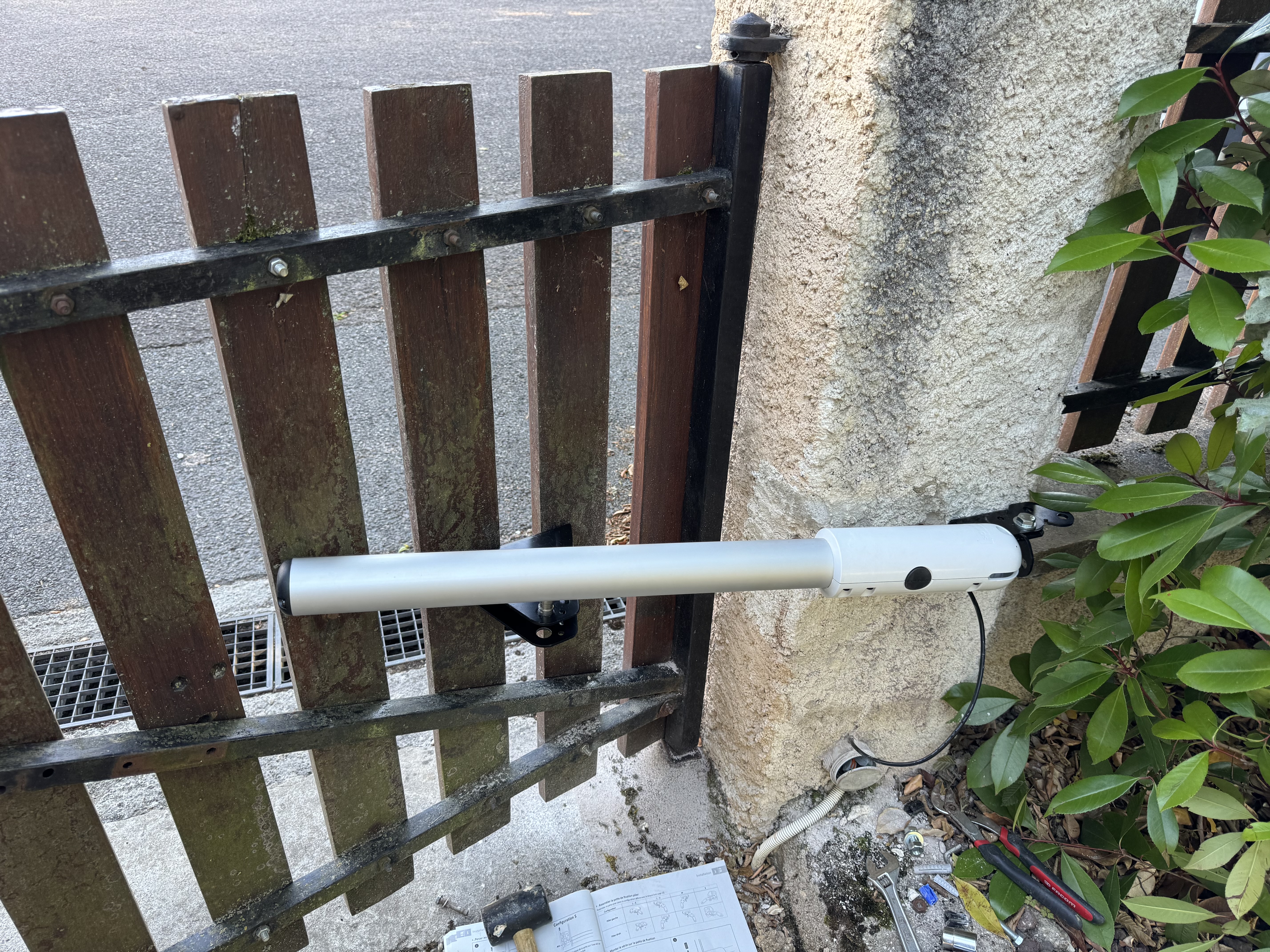 J’ai tenté d’installer un automatisme sgs essential. Je crois avoir suivi la documentation mais malheureusement le verrin bute dans le portail. Ma côte A est de 18cm, j’ai mis B à 21,5 cm et j’ai pris la position LE. Je ne vois pas mon erreur….cf les photos. Les verrins doivent ils être parallèle au portail lorsque celui-ci est fermé ? Je ne vois aucune indication de ce type. Merci de l’aide et des avis.