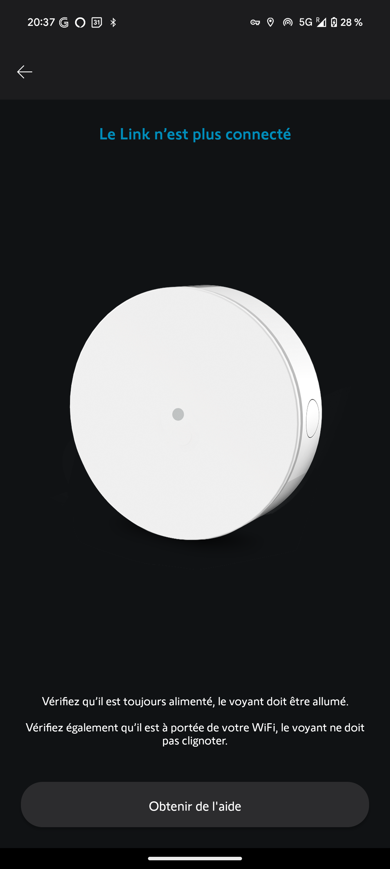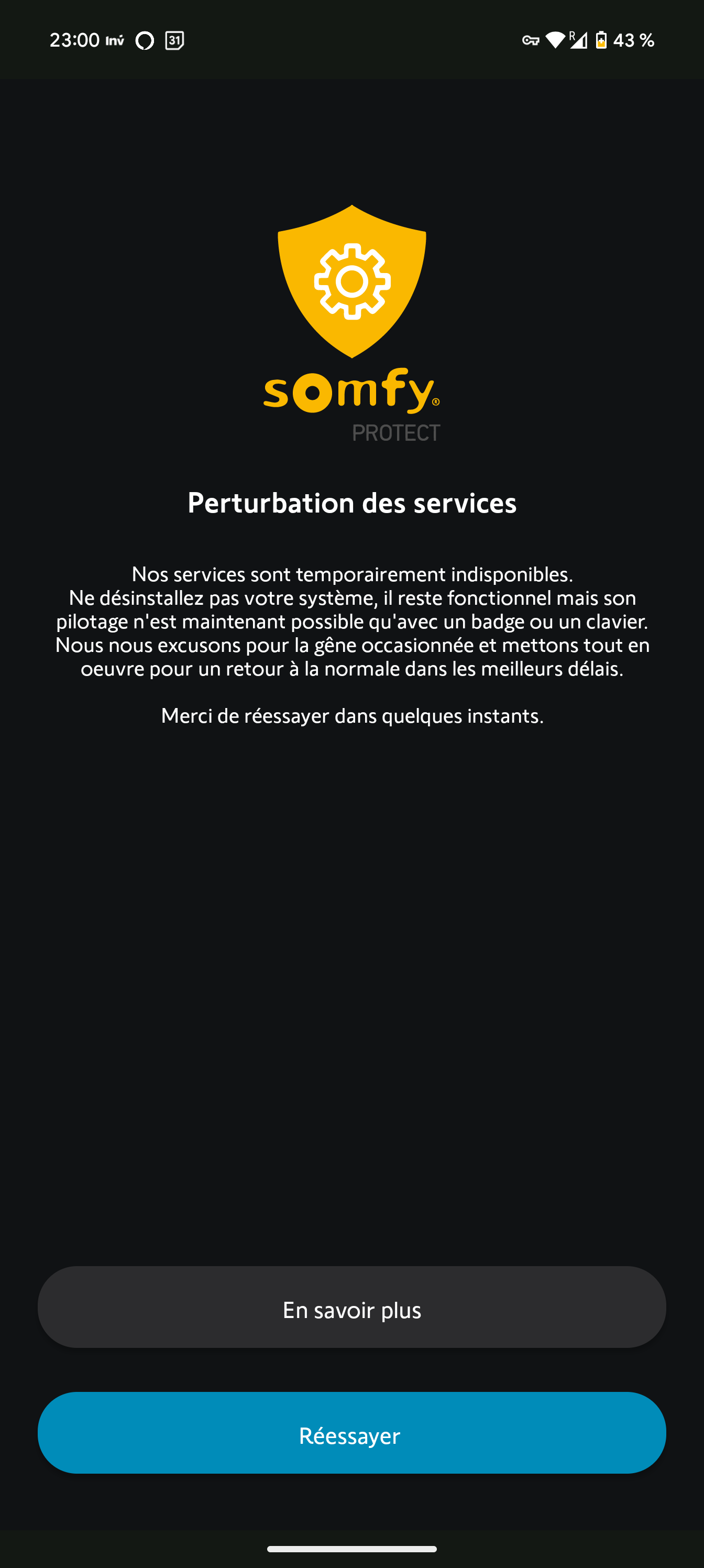 Somfy Home Alarm : Link déconnecté du wifi depuis perturbations services Somfy