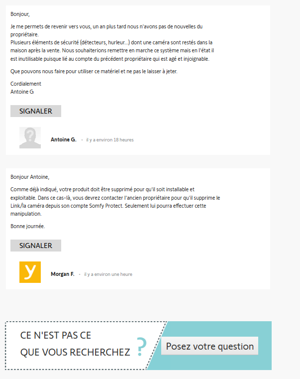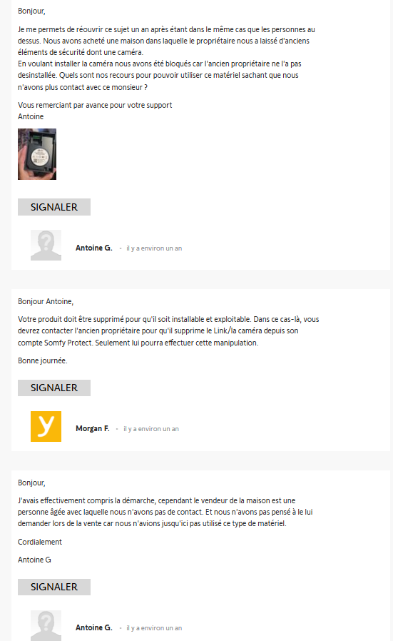 Suite à l'achat de ma maison auprès d'un particulier âgé, nous avons récupéré du matériel de sécurité de marque SOMFY,