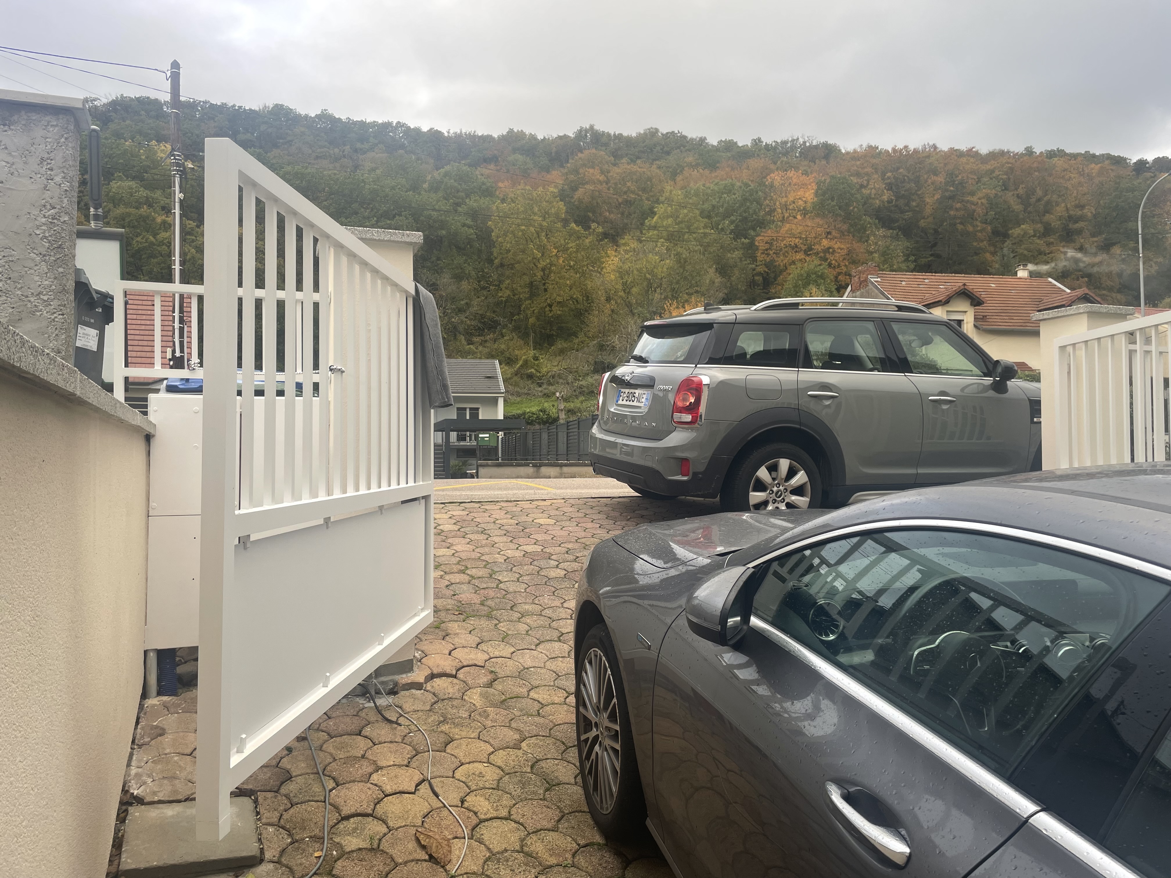 Du côté gauche (vue depuis habitation) il faudrait que le vantail s’ouvre d’au moins 100 degrés, idéalement 110 pour ne pas être contre véhicule. Voir photos.