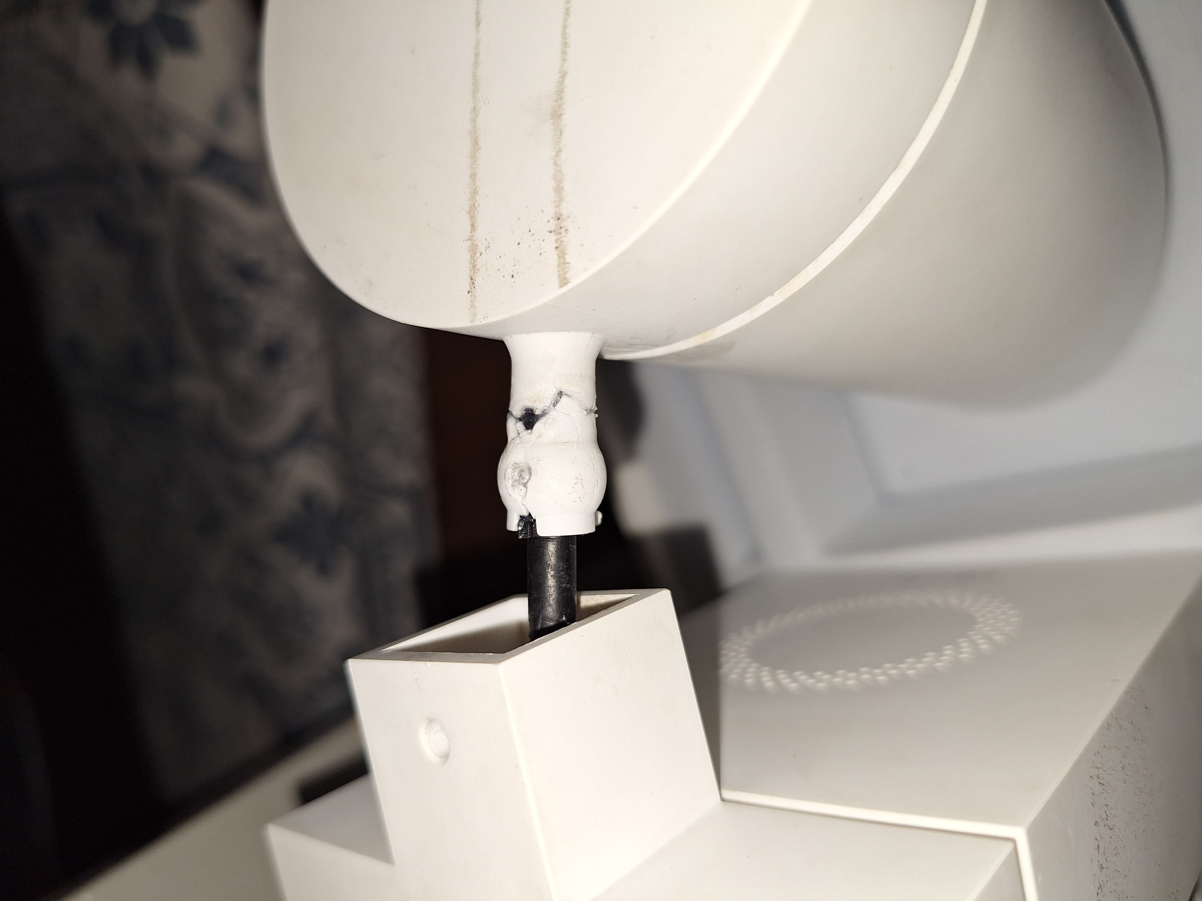 la rotule de rotation de ma caméra outdoor s’est cassé toute seule. En visionnant le direct je vois que l’image est tombante, pensant que cela était dû au vent en souhaitant la remettre en place je m’aperçoit qu’elle tiens à un câble.