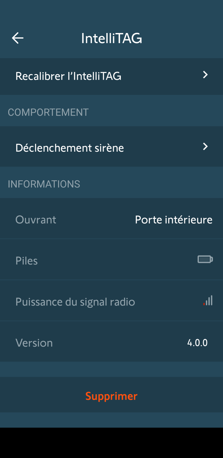 Je joins une image de l'état IntelliTAG signalé "Signal radio faible" (1 barre rouge et 3 barres blanches), l'affichage pile semble vide, est-ce le cas?