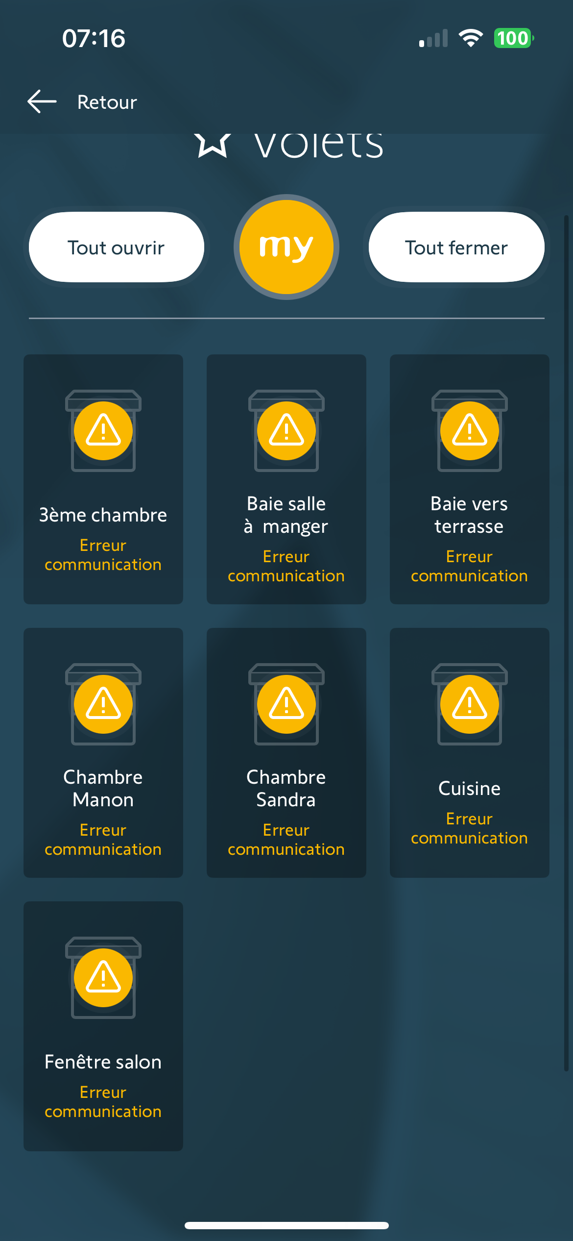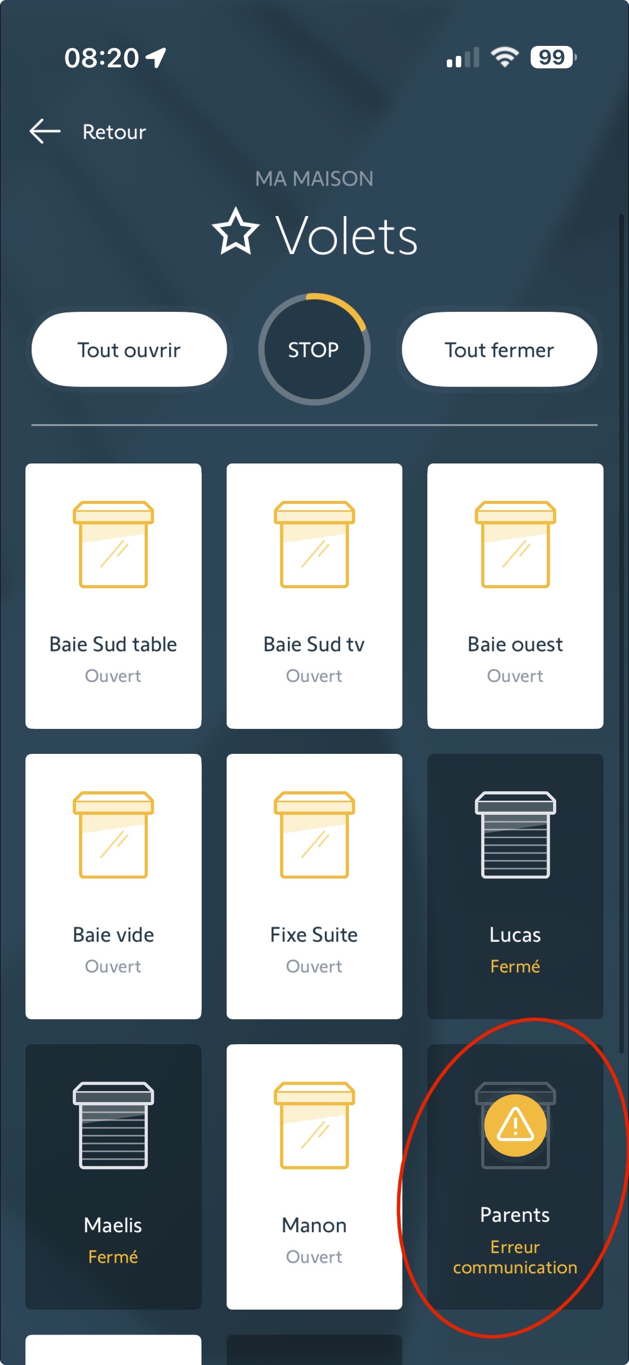 Comme beaucoup d’entre vous j’ai aussi une « erreur de communication » avec certains de mes volets roulants sur l’application Tahoma.