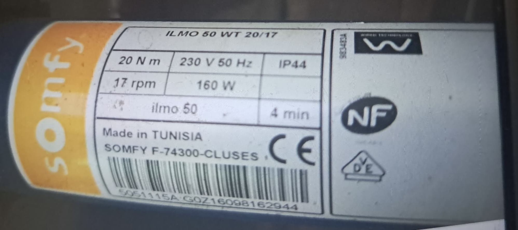 Je dois remplacer le moteur d’un volet roulant dont la référence est la suivante : ILMO 50 WT 20/17 - 230 V - 50 Hz - 160 W - IP 44 -4 mm