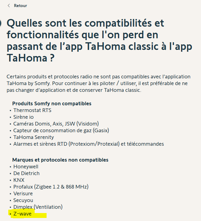 l'application Tahoma By somfy vous met en garde plusieurs fois concernant la perte de compatibilité des equipements en vous indiquant egalement qu'il ne sera plus possible de revenir en arriere.