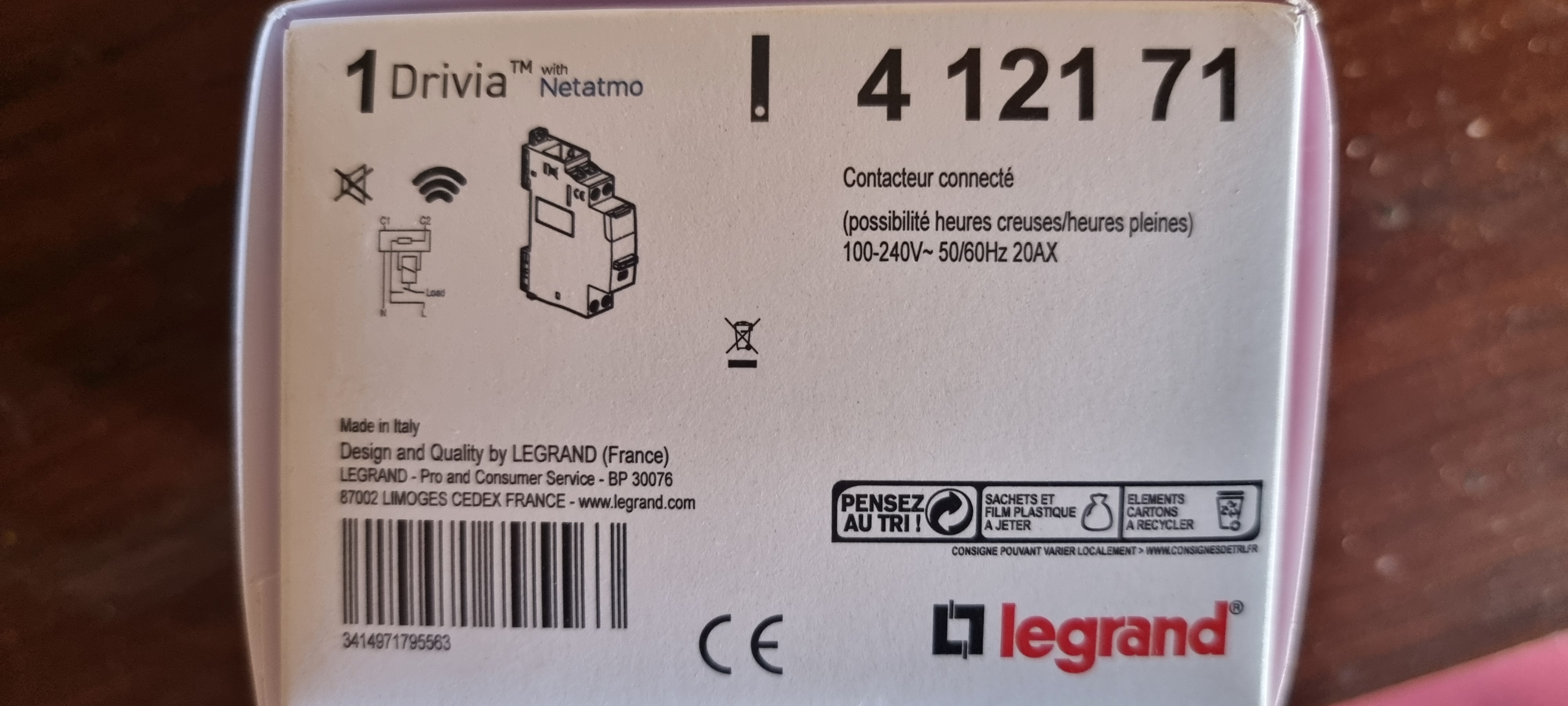 Je souhaite utiliser la comptabilité de Tahoma Switch avec les solutions Drivia Netatmo Legrand précisément les contacteur de la référence 4 121 71 photo jointe.