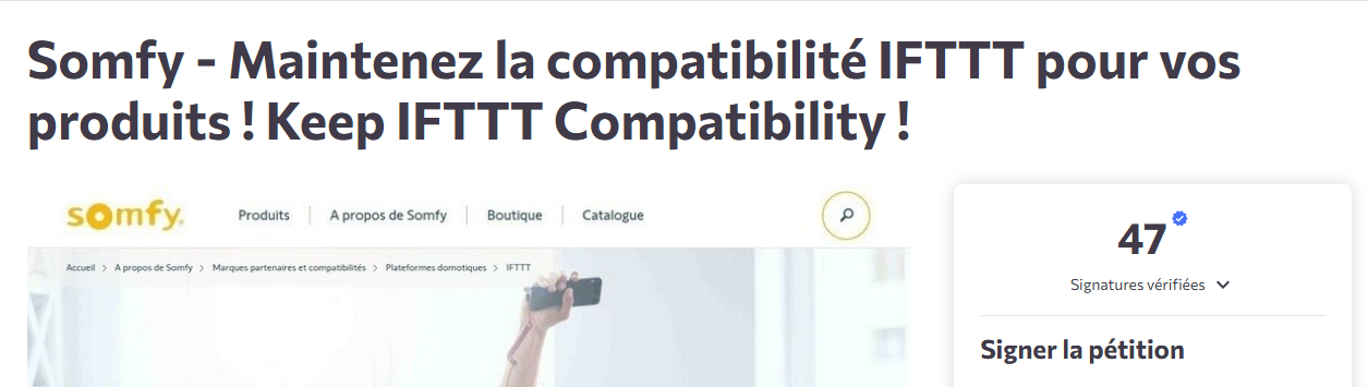 Il y a eu la même levé de bouclier il y a quelques mois avec l'arrêt d'IFTTT et la mise en place d'une pétition en ligne sur ce qui était considéré comme inadmissible de la part de Somfy;