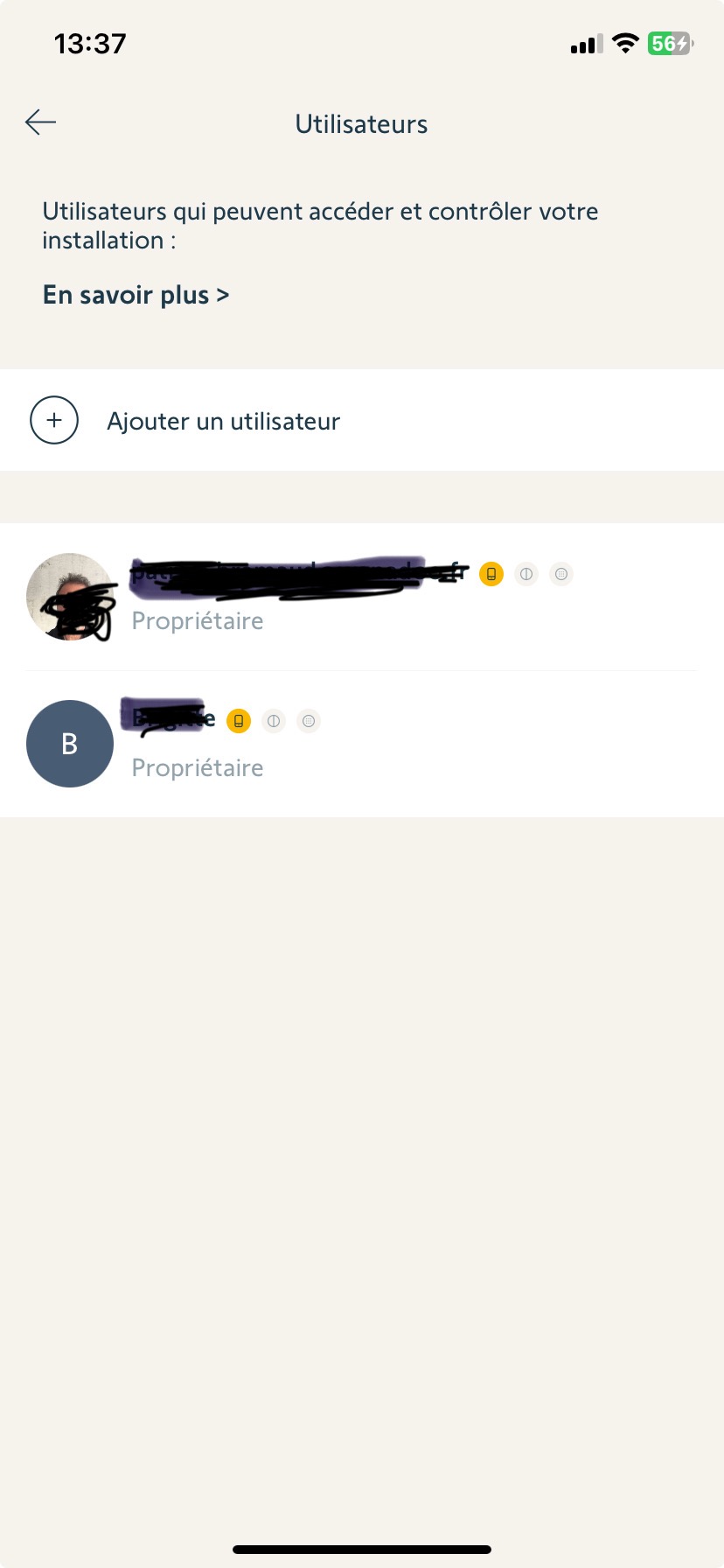 Poster une copie d'écran du menu utilisateurs de Somfy Protect.
