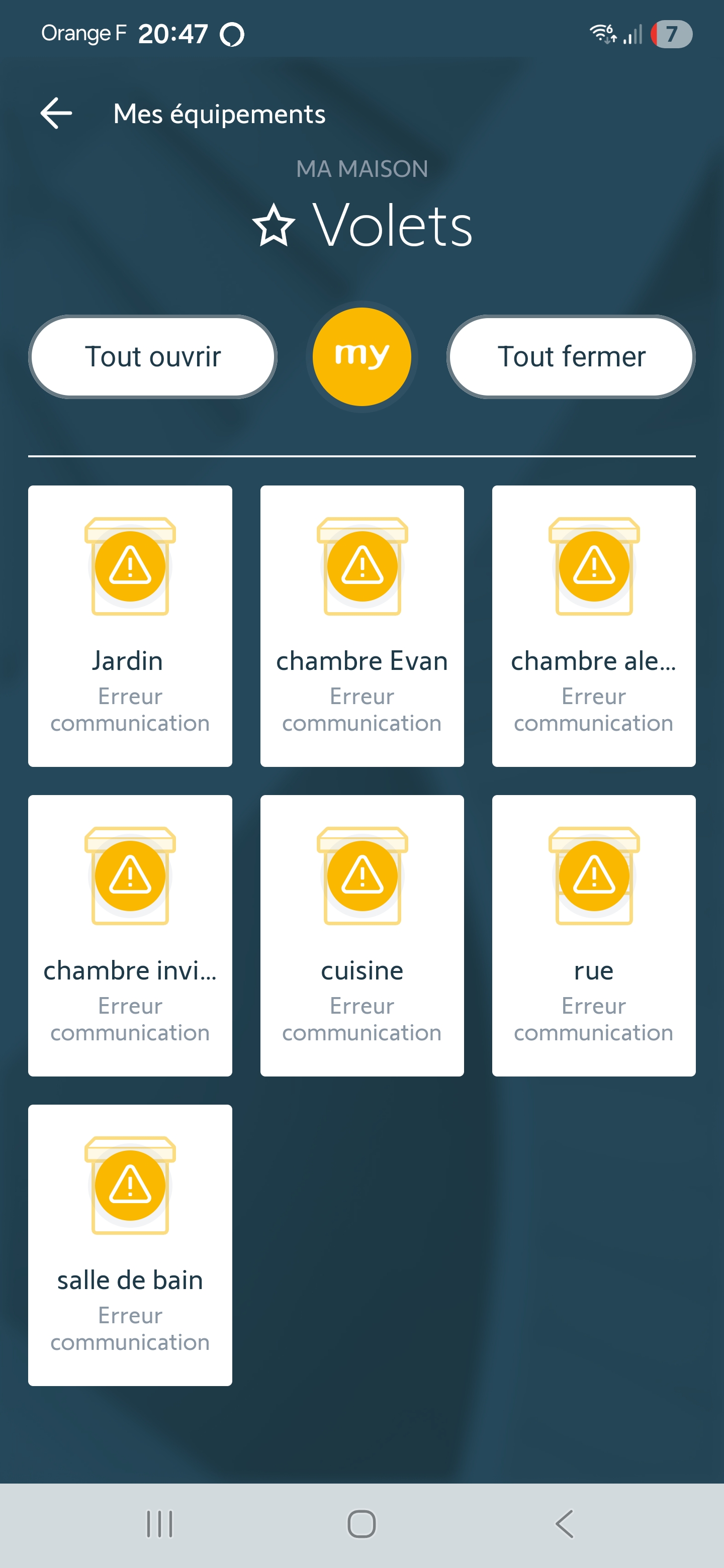 Tout fonctionnait correctement mais depuis la dernière mise a jour tous mes volets sont en erreur de communication sur l'application..