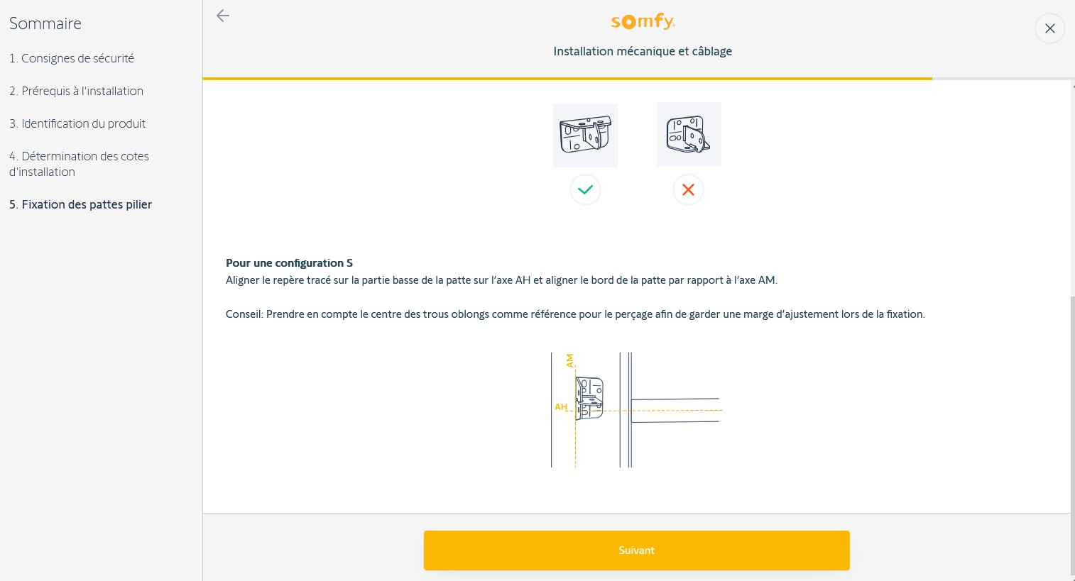 Il faut aller en bas dans la partie "Assistance pas-à-pas Installer, réparer, utiliser". Ensuite cliquez sur "installation mécanique et cablage" et allez jusqu'a la partie 5 "Fixation des pattes pilier", il y a le schéma d'installation pour la configuration S.