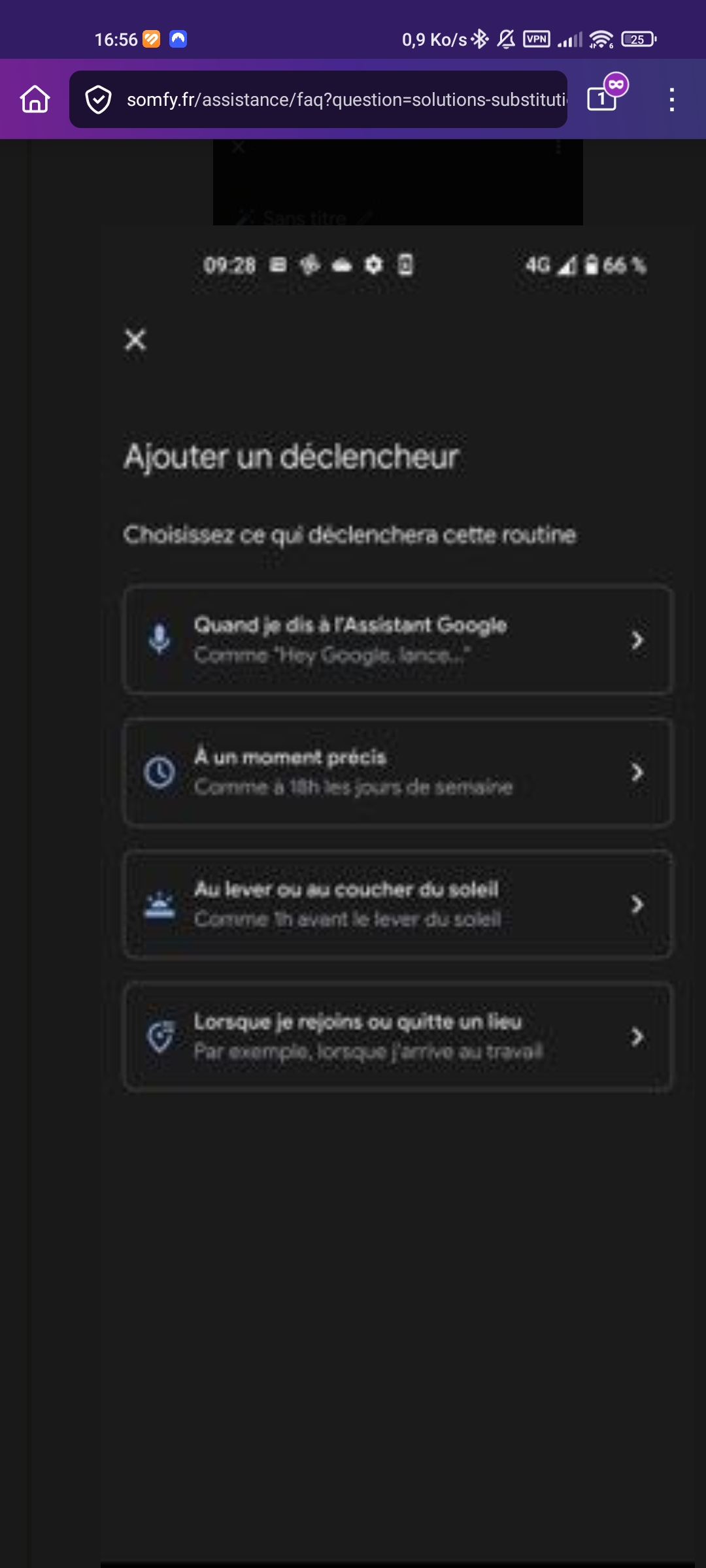 J'utilisais l'appli Home avec Tahoma pour déclencher l'ouverture de mes volets à mon arrivée: Home disposait d'un déclencheur "lorsque je rejoins ou quitte un lieu".