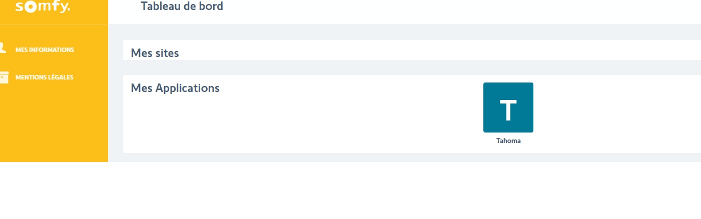 Et pardon... j'avais oublié, sur https://accounts.somfy.com/dashboard, je n'ai as accès à Tahoma classic et l'écran me parait bizarre car je n'ai pas de site, c'est vide. Est-ce normal?