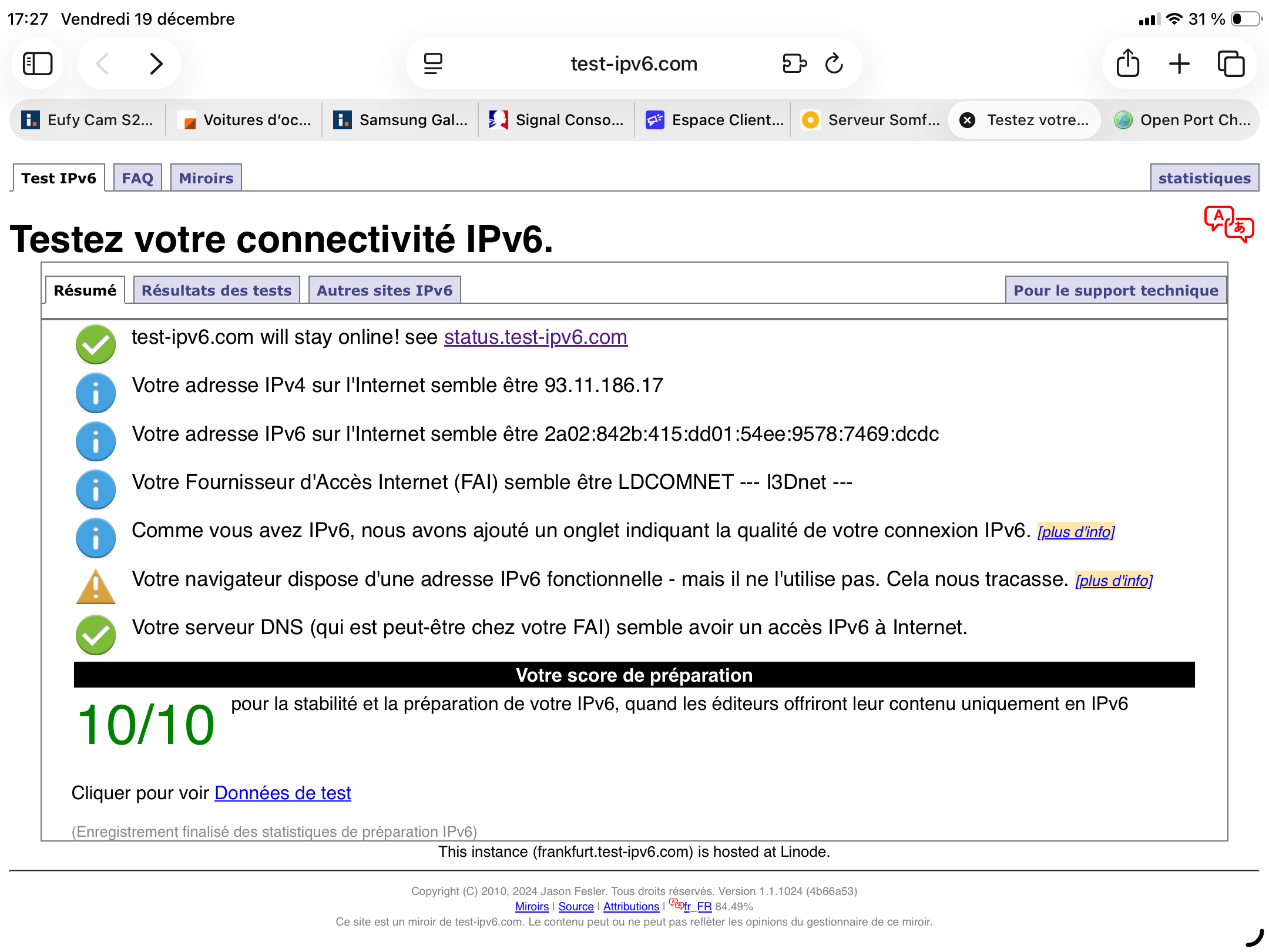 Pour info : ports 443 et 80 ouverts, toutes connecteurs OK , pas de panne de courant, Modem OK etc etc etc