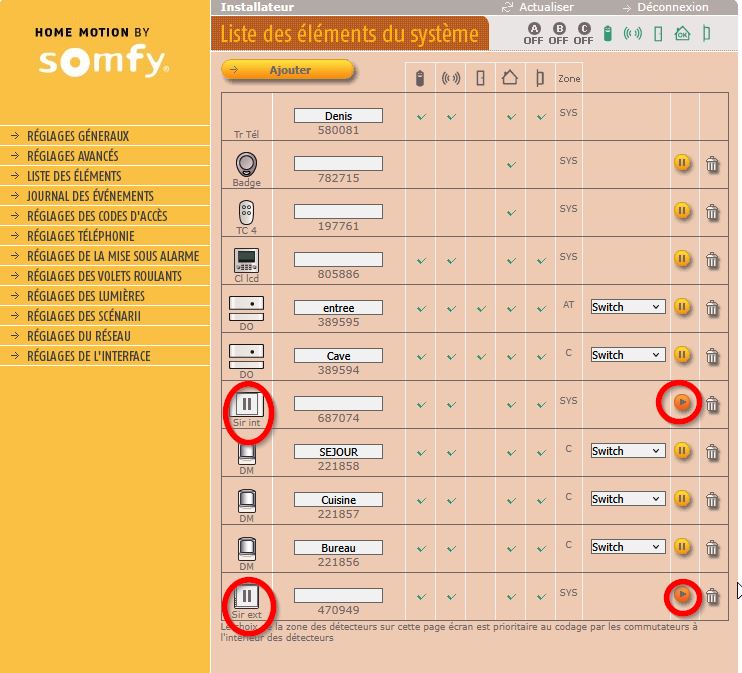 Or bien que j'ai désactivé les sirènes dans la liste des éléments, celle-ci ne sont pas désactivées et se mettent à hurler. Cela veut-il dire que l'inactivation concerne uniquement le switch d'ouverture pour remplacer les piles ? Existe-t-il une solution pour désactiver les sirènes ou faut-il enlever les piles de celles-ci?