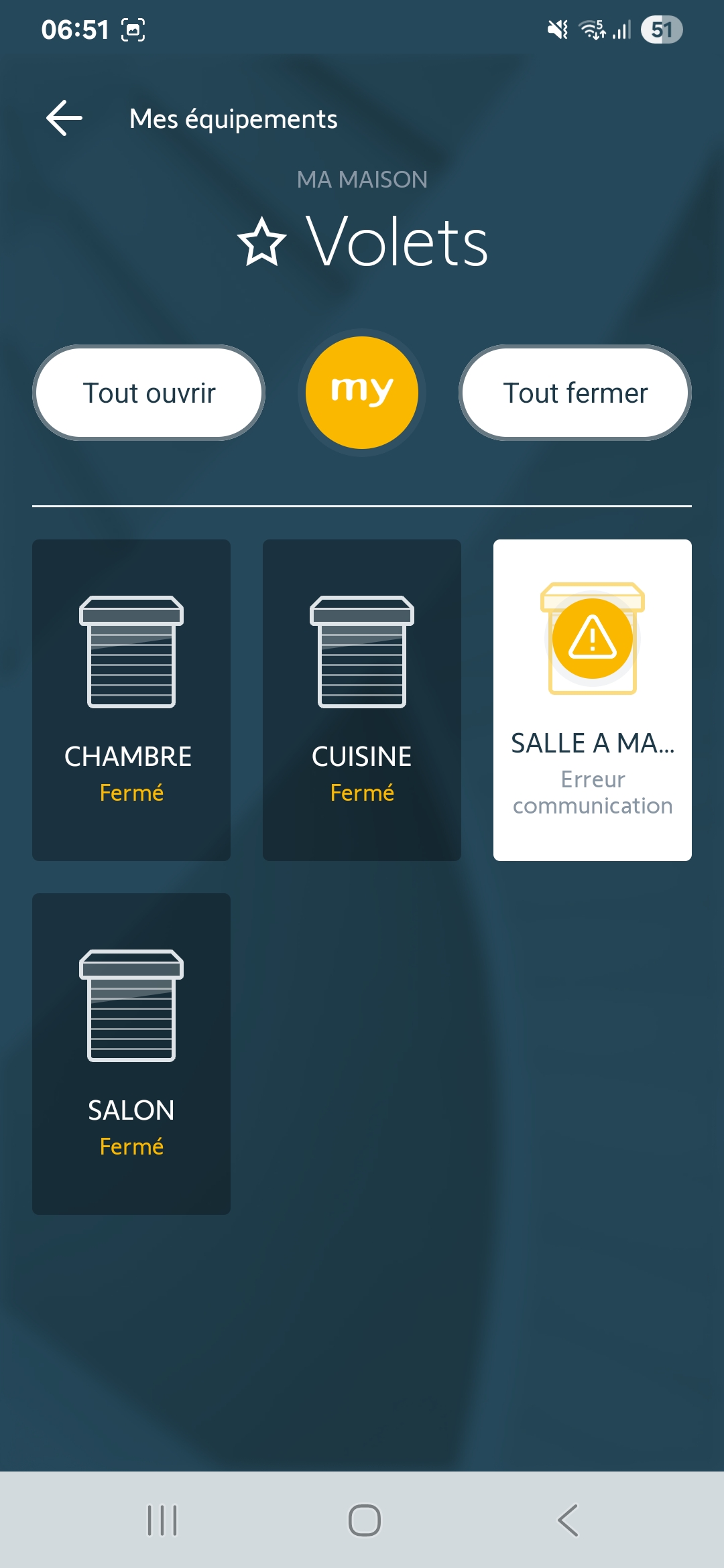 J'ai depuis quelques jours le message erreur communication qui s'affiche pour mon volet de salle à manger.