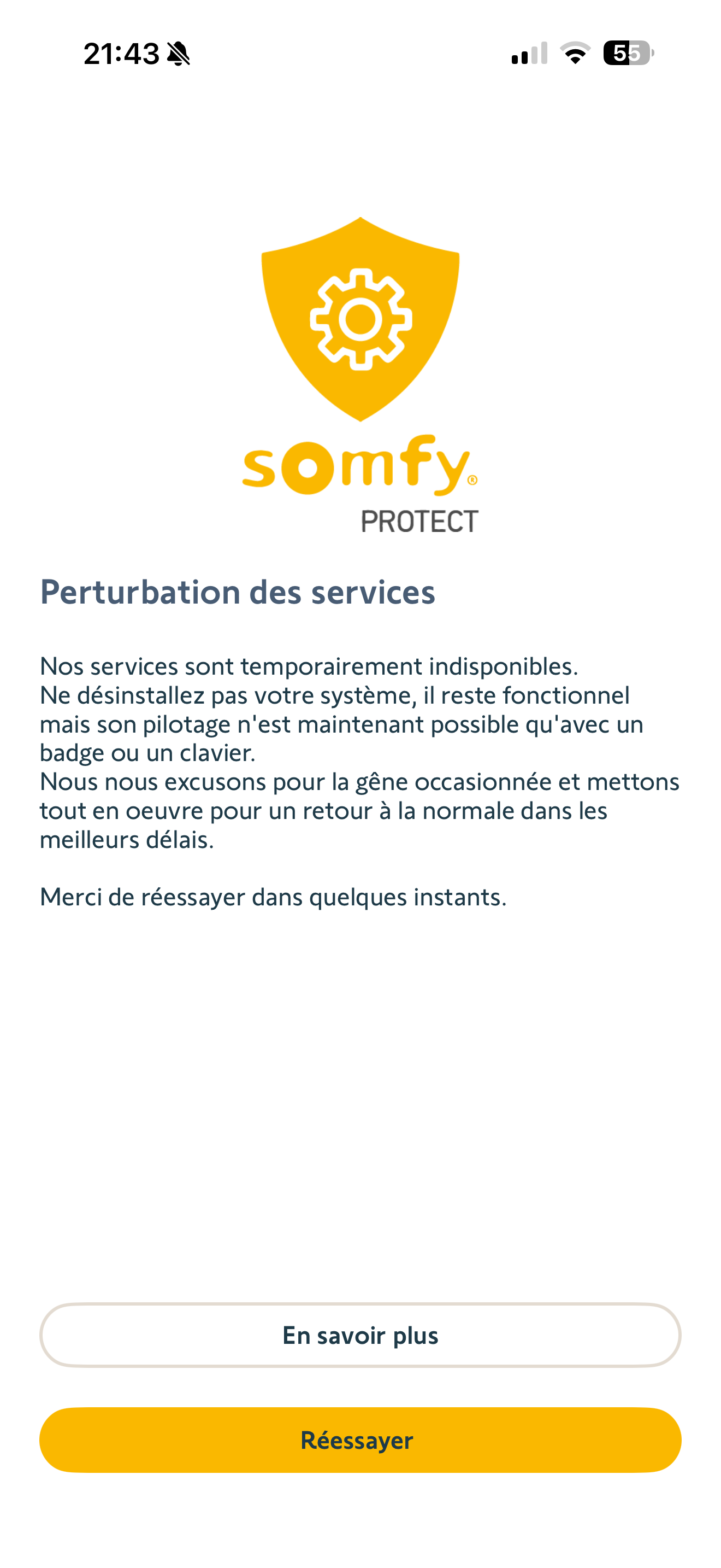 Dans Somfy Protect aller dans ../Mon compte et cliquer sur la porte des sortie en haut a droite pour vous déconnecter des serveurs Somfy.