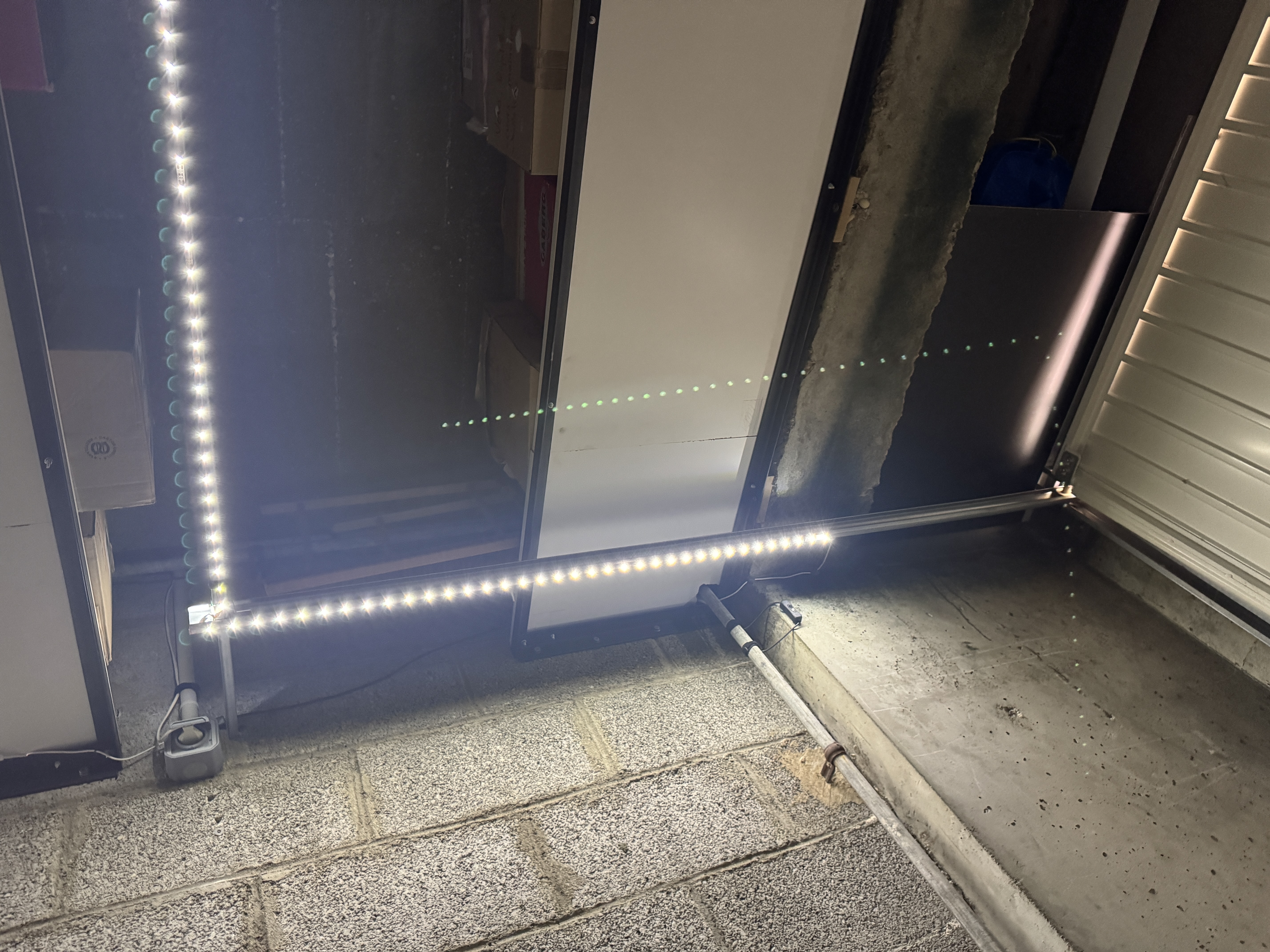 Photos des faces gauche et droite avec vue sur le rail la poutre et le plafond , porte fermée ?