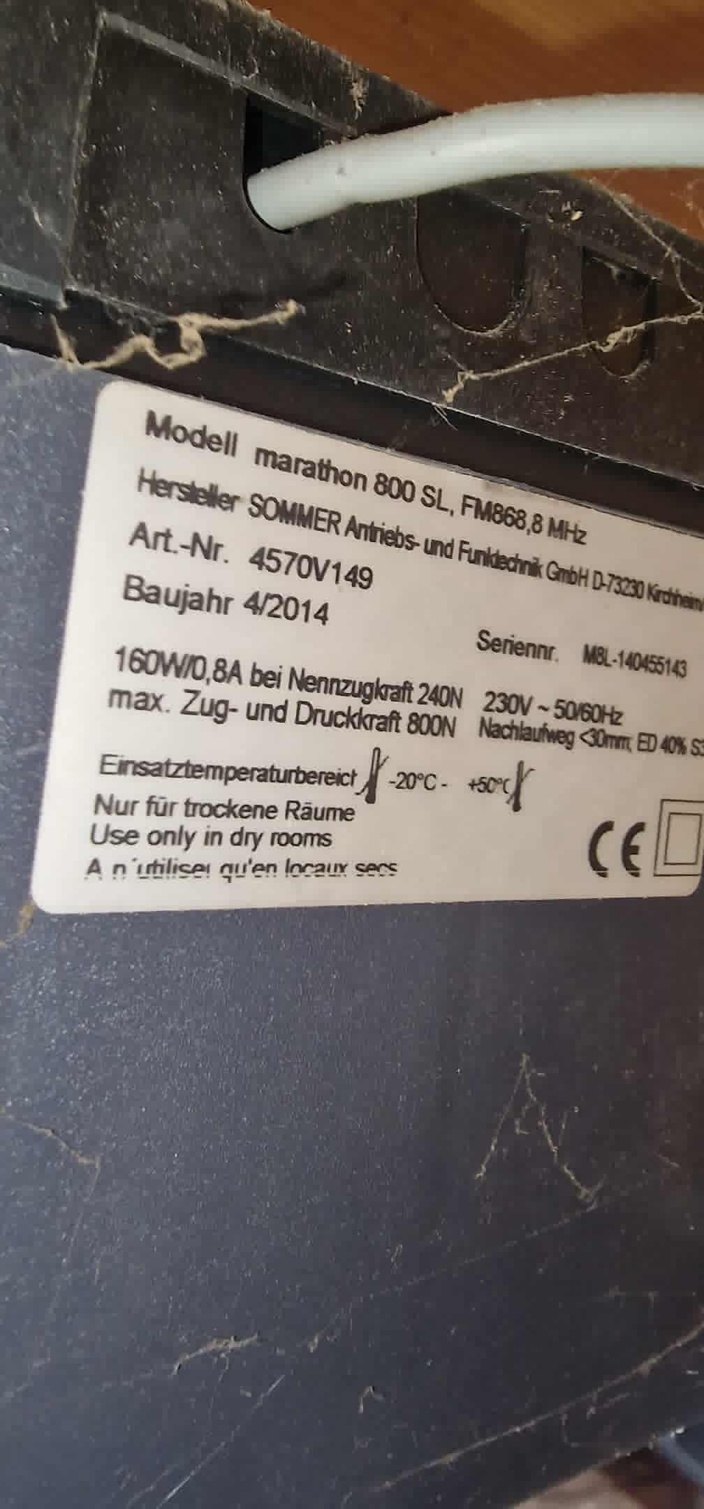 comment connecter ma porte de garage la toulousiane, moteur SOMMER modéle marathon 800SL, FM868,8 mhZ 0 MA tahoma SCHITCH