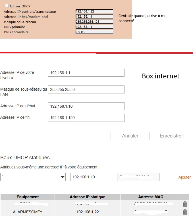La centrale est paramétrée en IP Fixe comme la capture jointe.