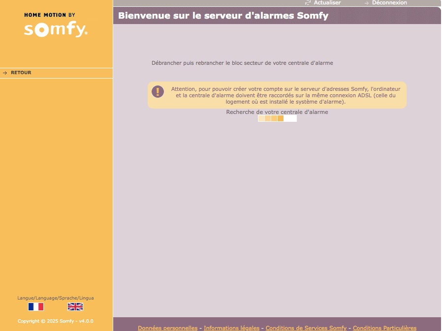 Je ne comprends pas la réponse j'ai acheté une alarme d'occasion et je n'arrive pas à créer un compte sur le serveur Somfy apparemment parce que cette centrale appartient déjà