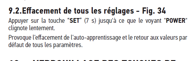 Après la réinitialisation, il faudra refaire l'autoapprentissage.