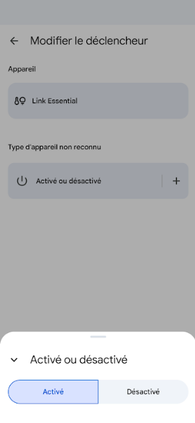 Merci Jacky. En effet, mais je ne dispose pas du même écran. Lorsque je configure ma routine, je sélectionne un type de déclencheur, je choisis "appareil", je sélectionne mon link Somfy et voilà les évènements qui me sont proposés. Pas d'évènement "désactivé" pour moi....