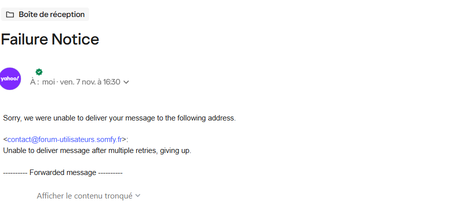 j ai bien reçu la réponse de Nicolas mais mes mails reviennent non distribués et donc abandonnés.