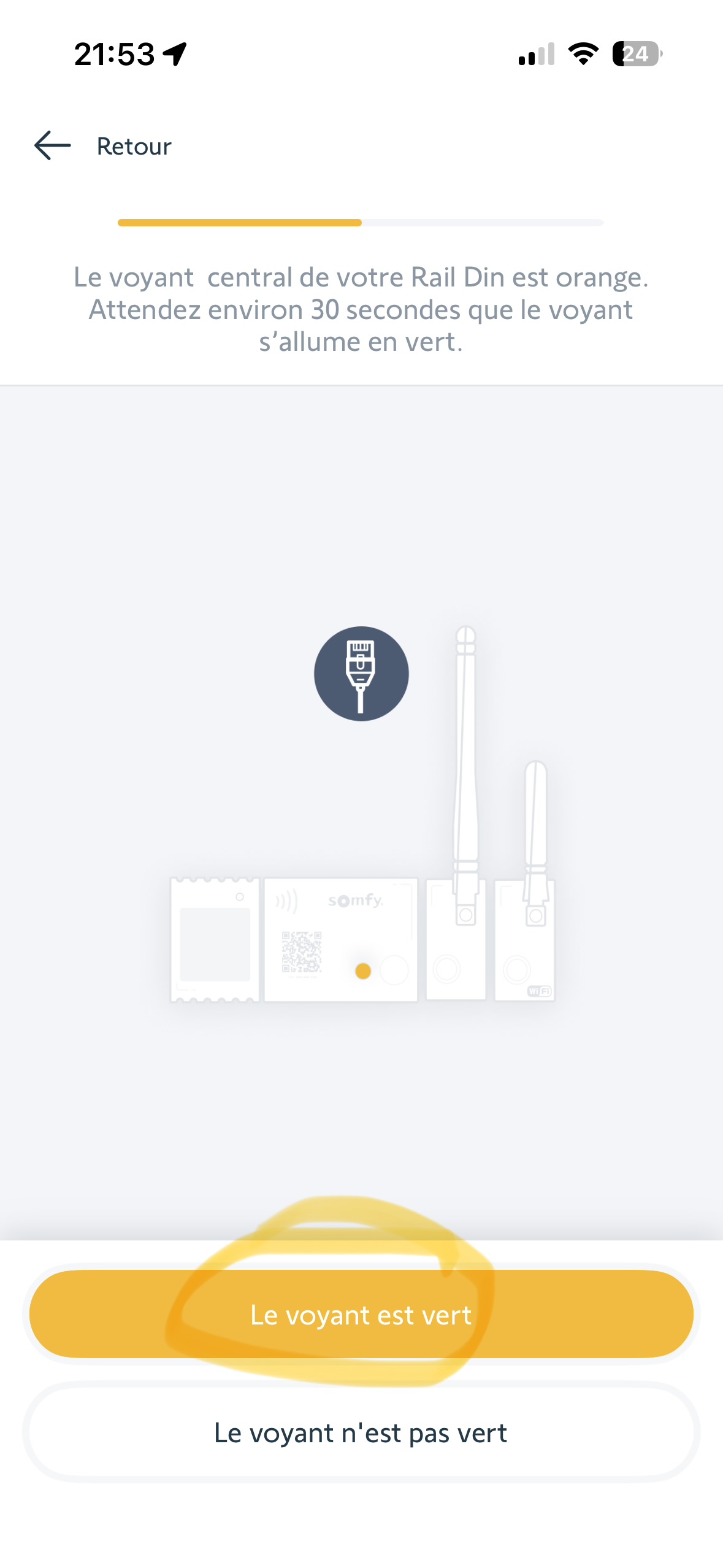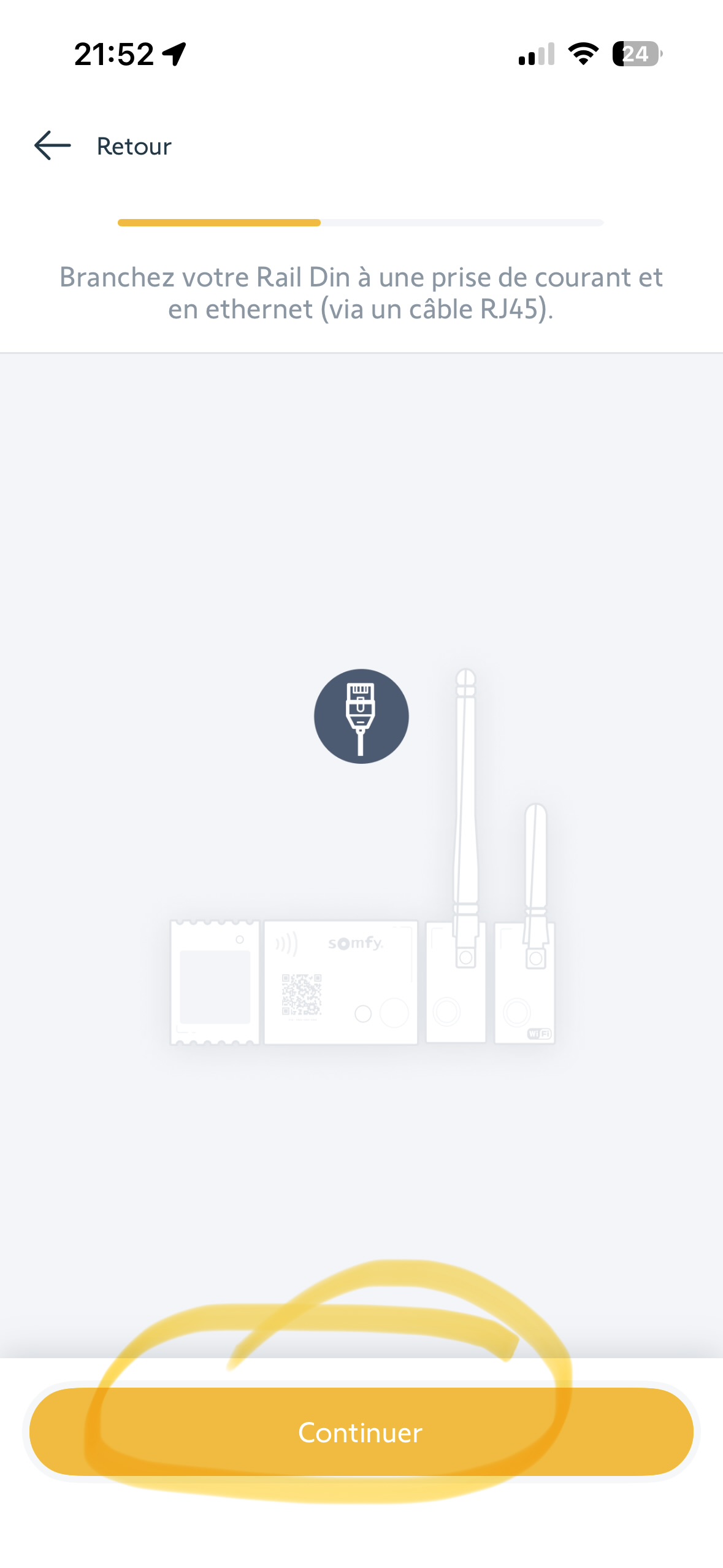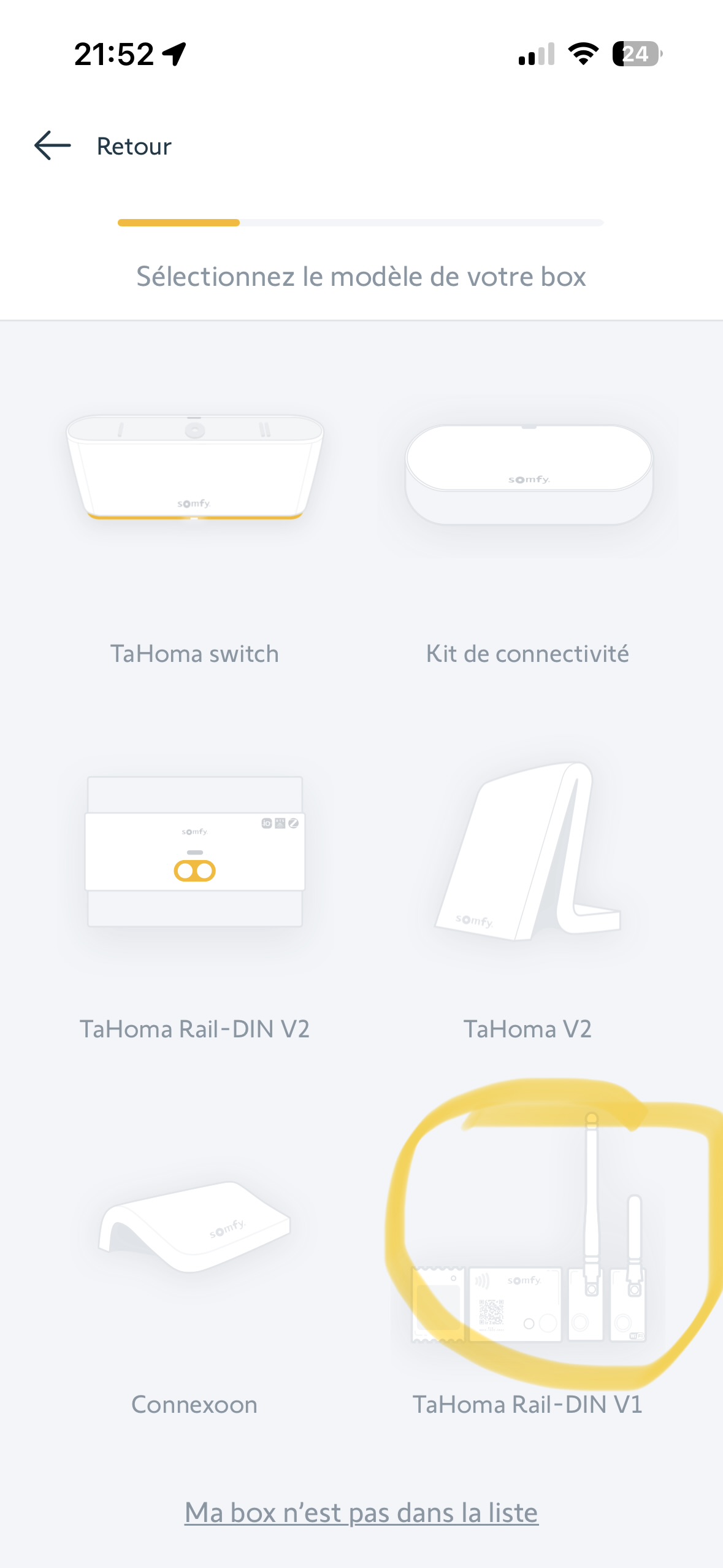 Suite à un emménagement dans un appartement disposant d'un TaHoma rail DIN V1, je souhaite configurer l'application TaHoma by Somfy. Cependant je reçois une erreur "Une erreur est survenue" après l'étape de détection de la box. Le voyant est bien vert. Peut-être parce-que le précédent propriétaire avait déjà configuré l'installation ?