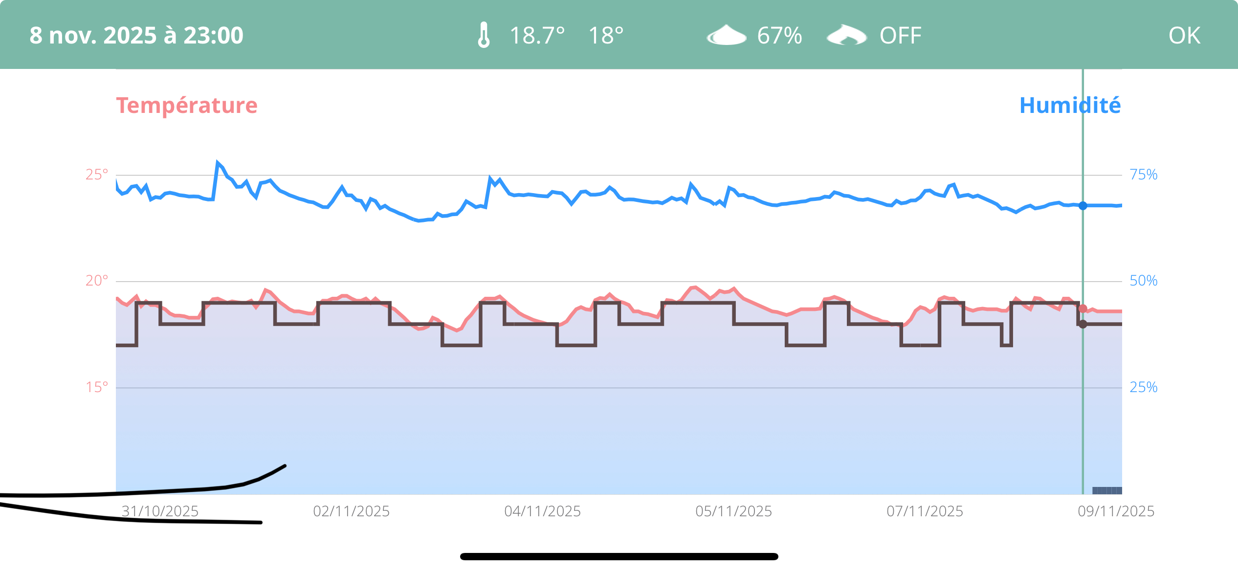 Sur l’application Thermostat, J’ai un affichage complètement erratique de la température de pilotage dans l’historique quand cela est au delà de 24h.