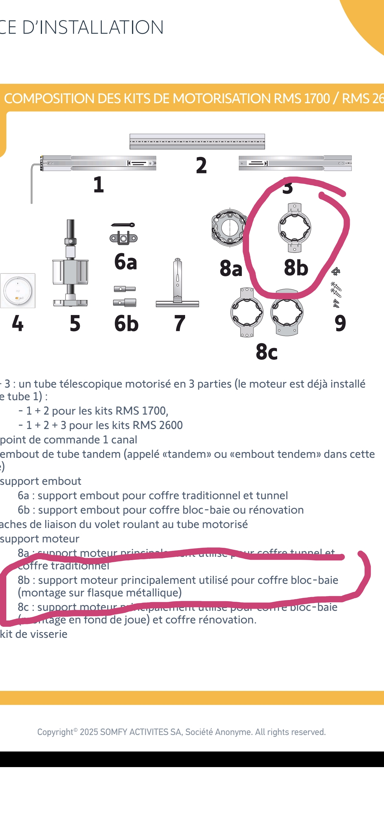 Cependant, pourriez vous me confirmer que vous m'indiquez bien d'utiliser le support 8b de la notice d'installation (voir PJ). Si oui, pourriez vous m'indiquer son épaisseur ?