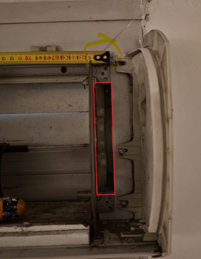 Comme vous les voyez sur la photo 1 et 2, mon coffre volet type bloc-baie est encastré de plusieurs centimètres dans le doublage/mur de façade.