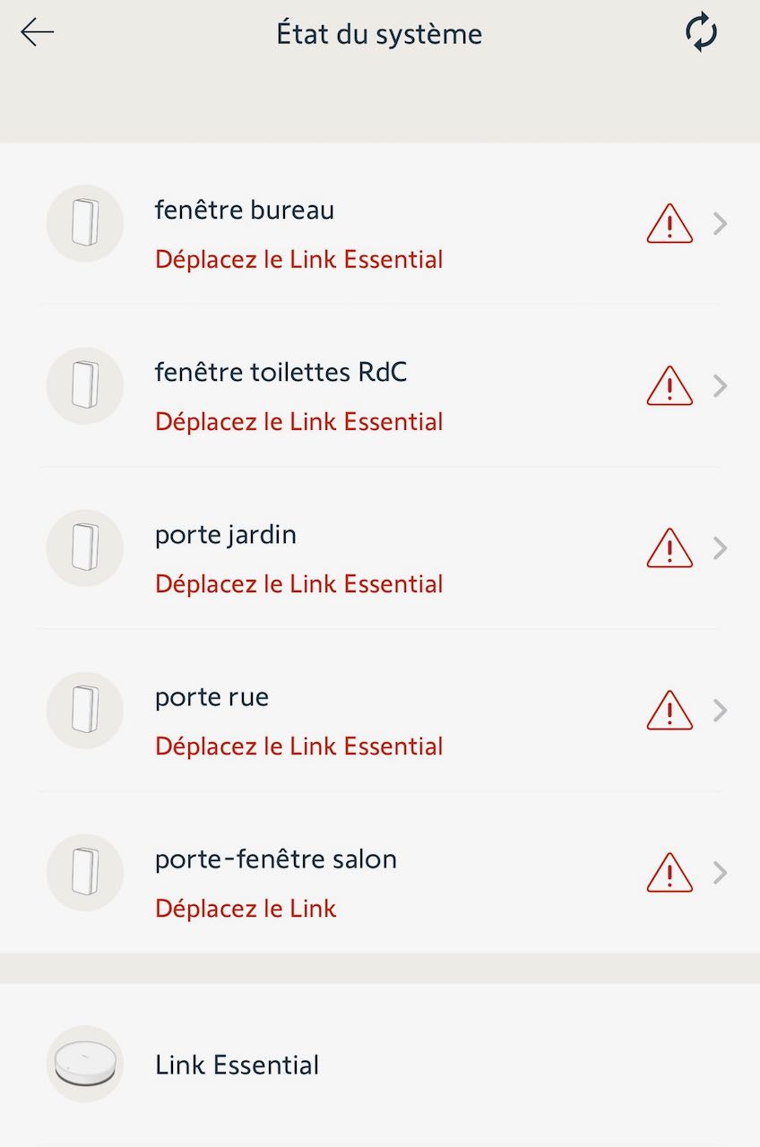 Mon système d'alarme m'indique en permanence dans "Etat du système" de déplacer le link essentiel pour plusieurs de mes équipements.