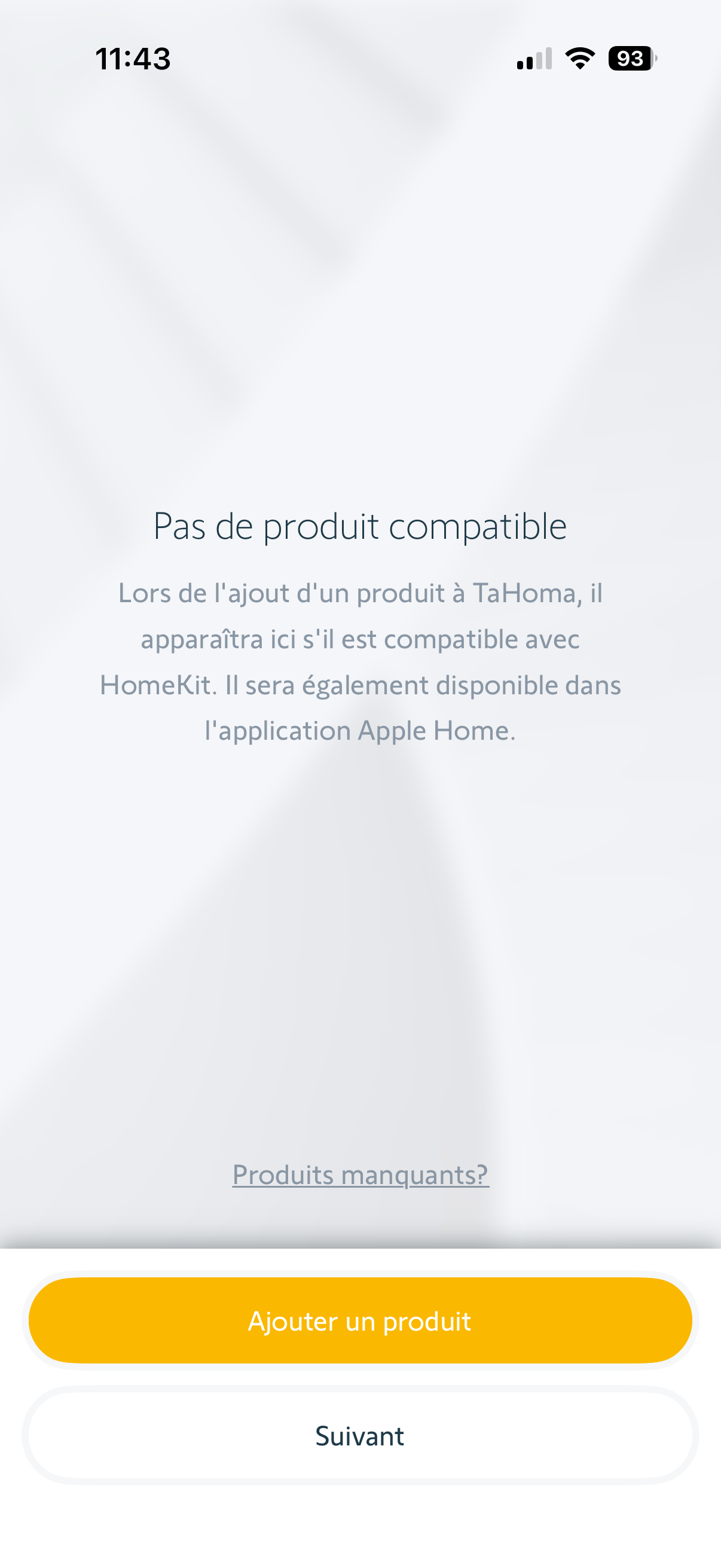 J’ai bien lié la box tahoma avec l’application HomeKit, mais je reçois un message d’erreur me disant qu’il n’y a pas de produits compatible.