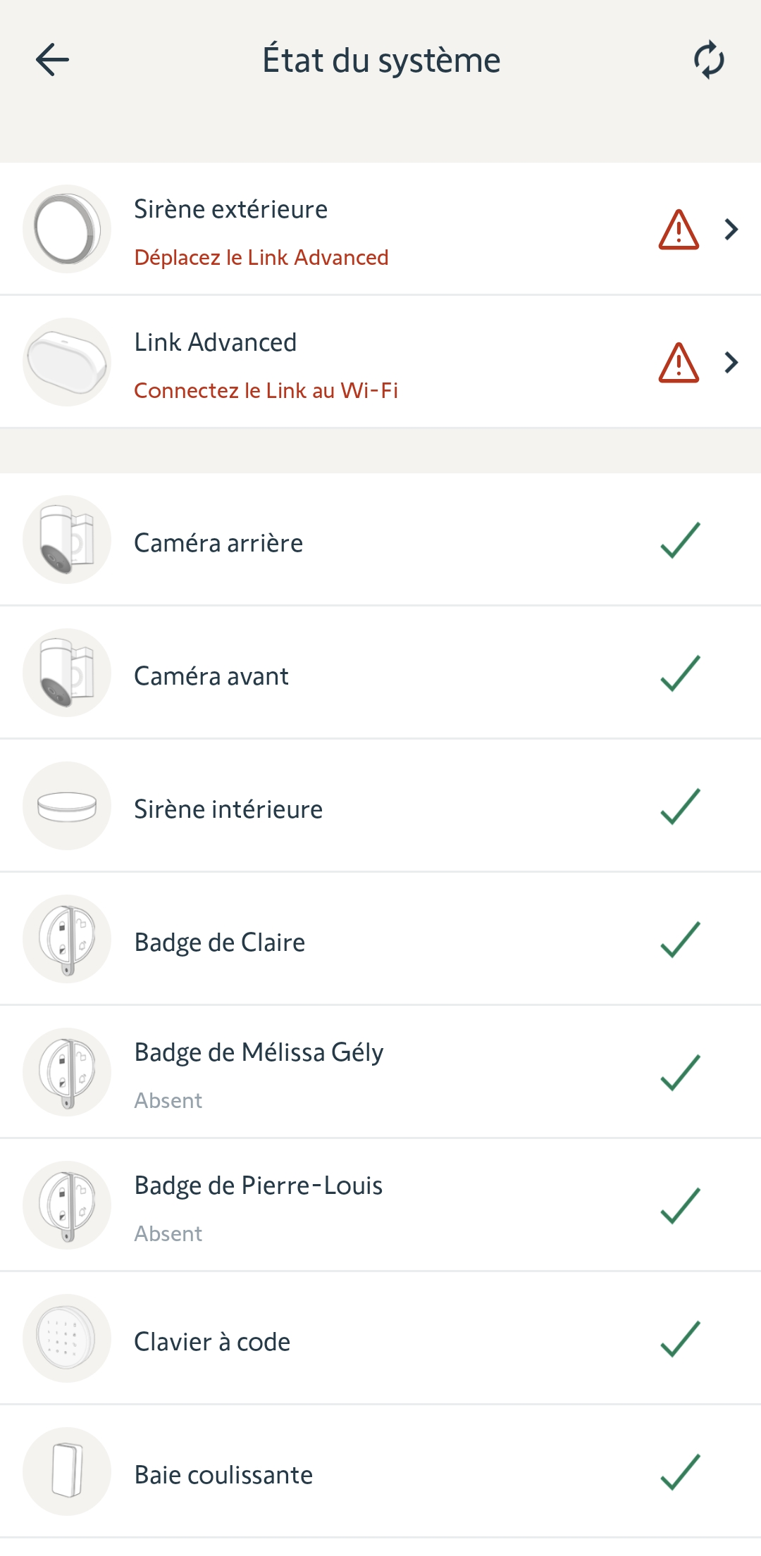 J’ai également essayé de supprimer le Link Advanced de mes équipements, mais j’ai le message suivant : « Vous ne pouvez pas effectuer cette opération quand votre alarme est activée.