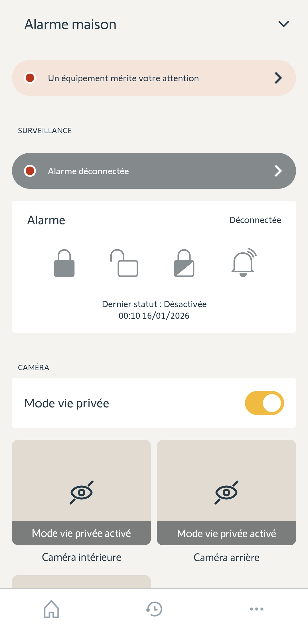 Votre alarme n'est pas armée, il faudrait procéder à un changement de réseau wifi du link.