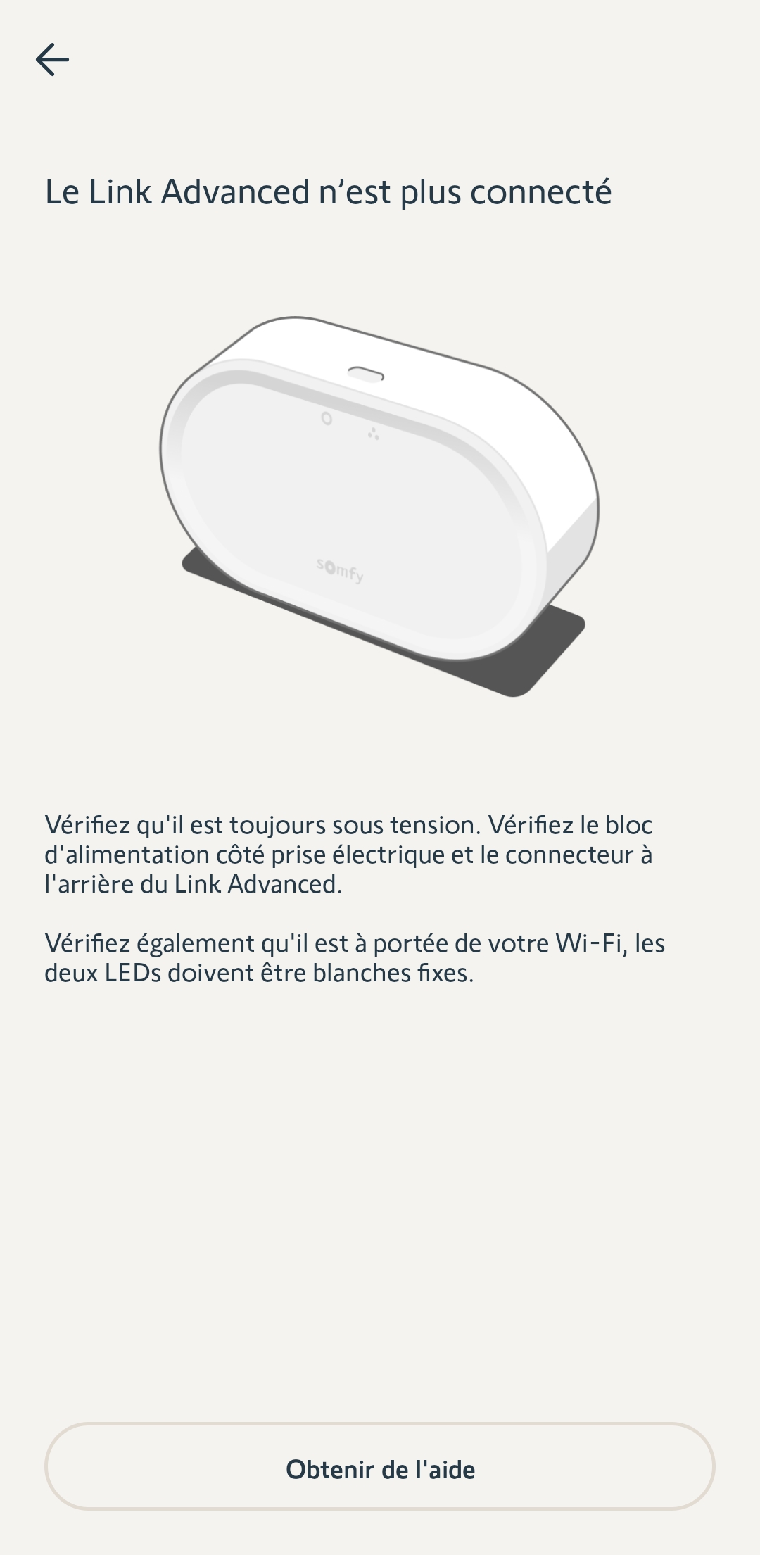 J’ai enclenché mon alarme hier soir et pendant mon absence, j’ai eu le message suivant dans l’application Android » Somfy Protect » : « Alarme déconnectée. ». Sur le Link Advanced, j’avais les voyants : Blanche fixe, et Verte et rouge clignotants. Sachant que je n’ai pas pu désactiver l’alarme à mon retour.